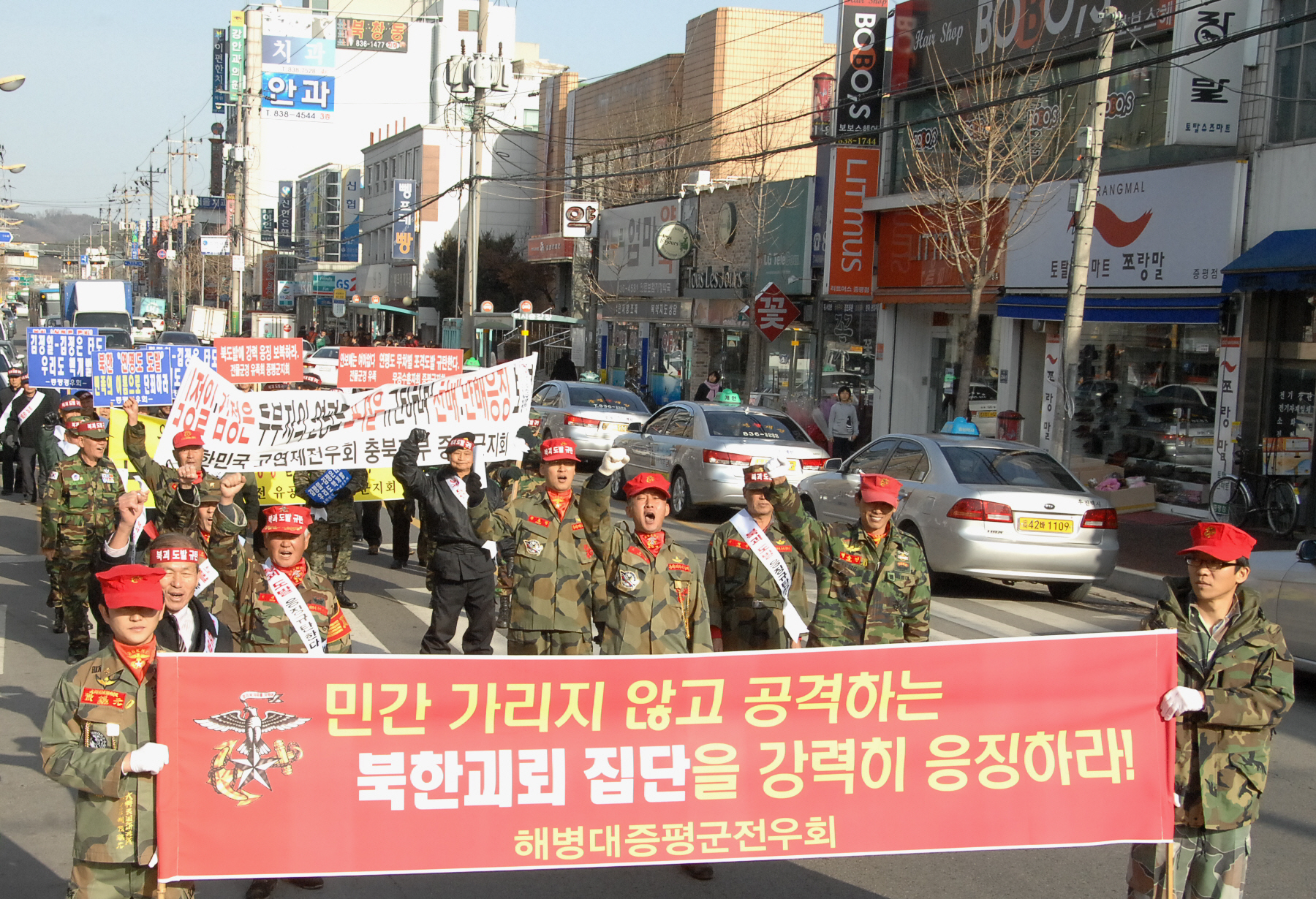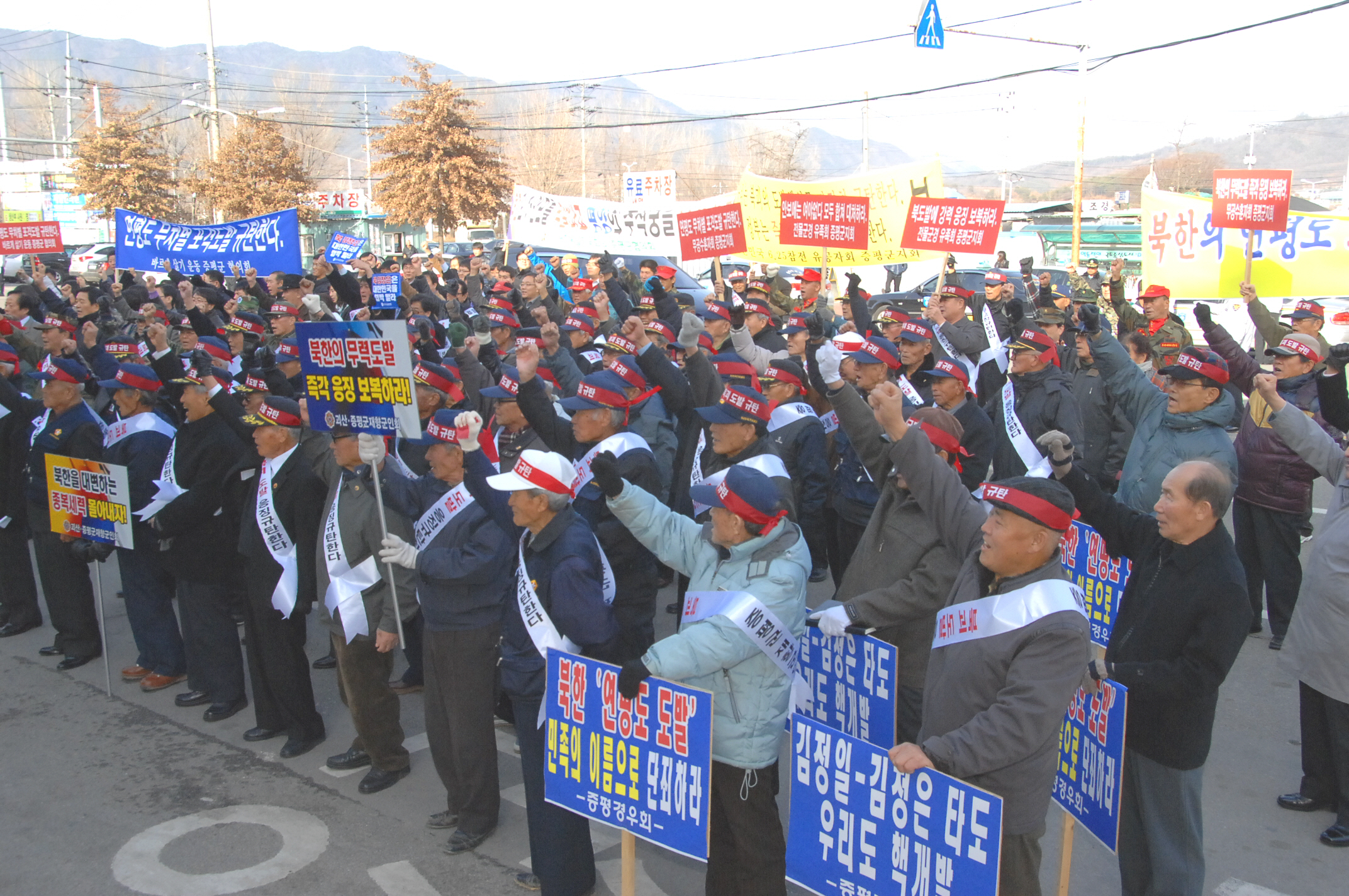 증평군재향군인회(회장 육재동)를 비롯한 지역 내 6개 보훈단체와 자유총연맹, 재향 경우회, 여성단체협의회, 민주평화통일자문회의 증평군협의회 등 사회단체는 10일 오후 1시 30분 군청 민원실 앞에서 ‘북한 연평도 포격도발’ 규탄 궐기대회를 개최했다. [보도자료실 참조]
