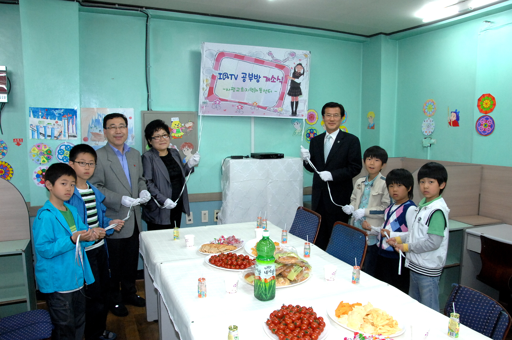증평군은 12일 오후 4시 증평읍 장동리 436-6번지에 위치한 사평교회 지역아동센터에서 홍성열 군수, 박흥규 KT증평지사장 및 아동 20여명이 참석한 가운데 ’IPTV 공부방’ 개소식을 열었다.[보도자료실 참조]