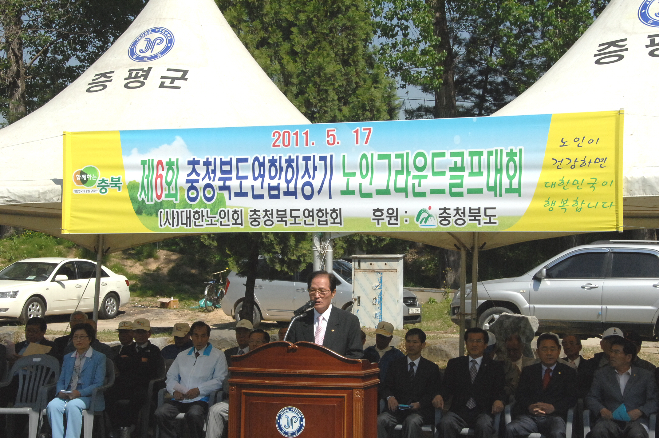 제6회 충북연합회장기 그라운드골프대회가 17일 오전10시 증평군 중평읍 송산리 보강천체육공원에서 도내 12개 시군 300여명의 선수단이 첨여한 가운데 [사]대한노인회충청북도연합회가 주최, 증평군지회 주관. 충청북도와 증평군 후원으로 열렸다.