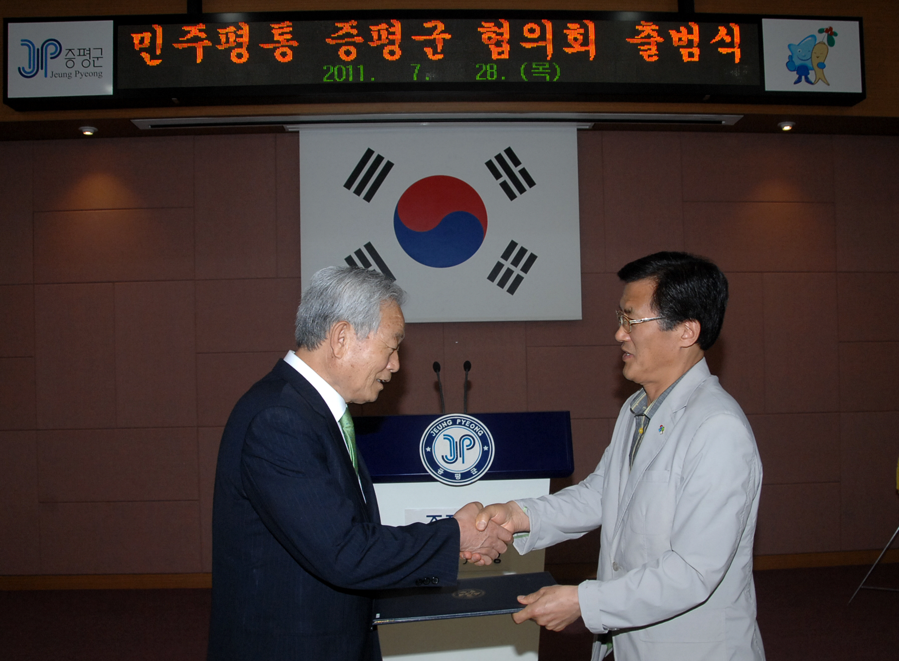 민주평통 증평군협의회(회장 김기환)는 28일 11시 증평군청 대회의실에서 홍성열 증평군수(대행기관장), 이충원 충북지역부의장을 비롯한 지역 내 기관·단체장과 자문위원 등 50여명이 참석한 가운데 제15기 출범식 및 위촉장 전수식을 가졌다.[보도자료실 참조]