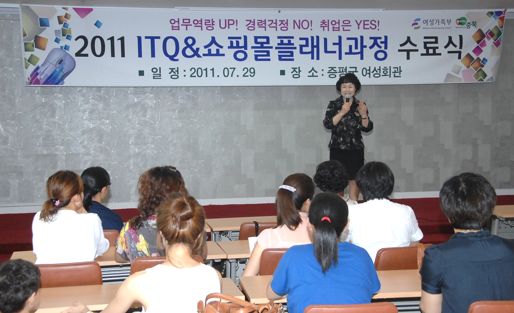 증평군 취업정보센터에서 마련한 여성가족부 국비지원 직업훈련 ‘ITQ&쇼핑몰플래너’과정 수료식이 29일 오전 10시 증평군 여성회관 교육실에서 열렸다.[보도자료실 참조]