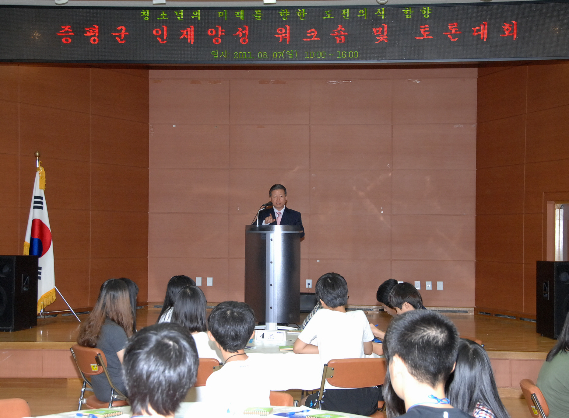 증평군은 지난 7일 율리휴양촌 신활력관에서 2011년도 장학금 수혜 학생 80여명을 대상으로 인재양성 워크숍 및 토론대회를 개최했다.[보도자료실 참조]
