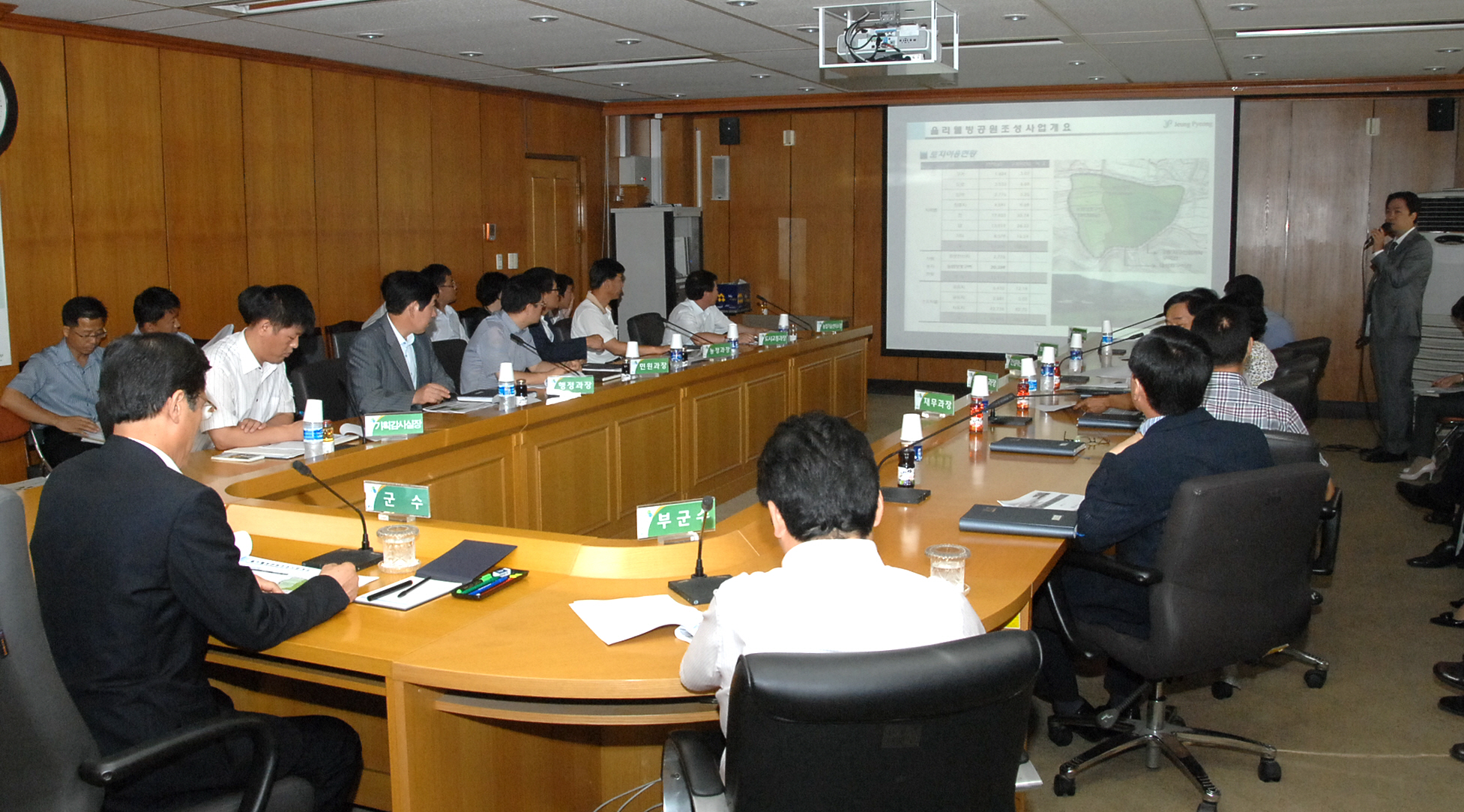 증평군은 7일 오전 10시 증평군청 소회의실에서 홍성열 증평군수를 비롯한 군 공무원 등 40여명이 참석한 가운데 증평읍 율리 522번지 일대에 조성을 추진하고 있는 율리웰빙공원 조성사업 기본 및 실시설계용역 보고회를 개최했다.[보도자료실 참조]