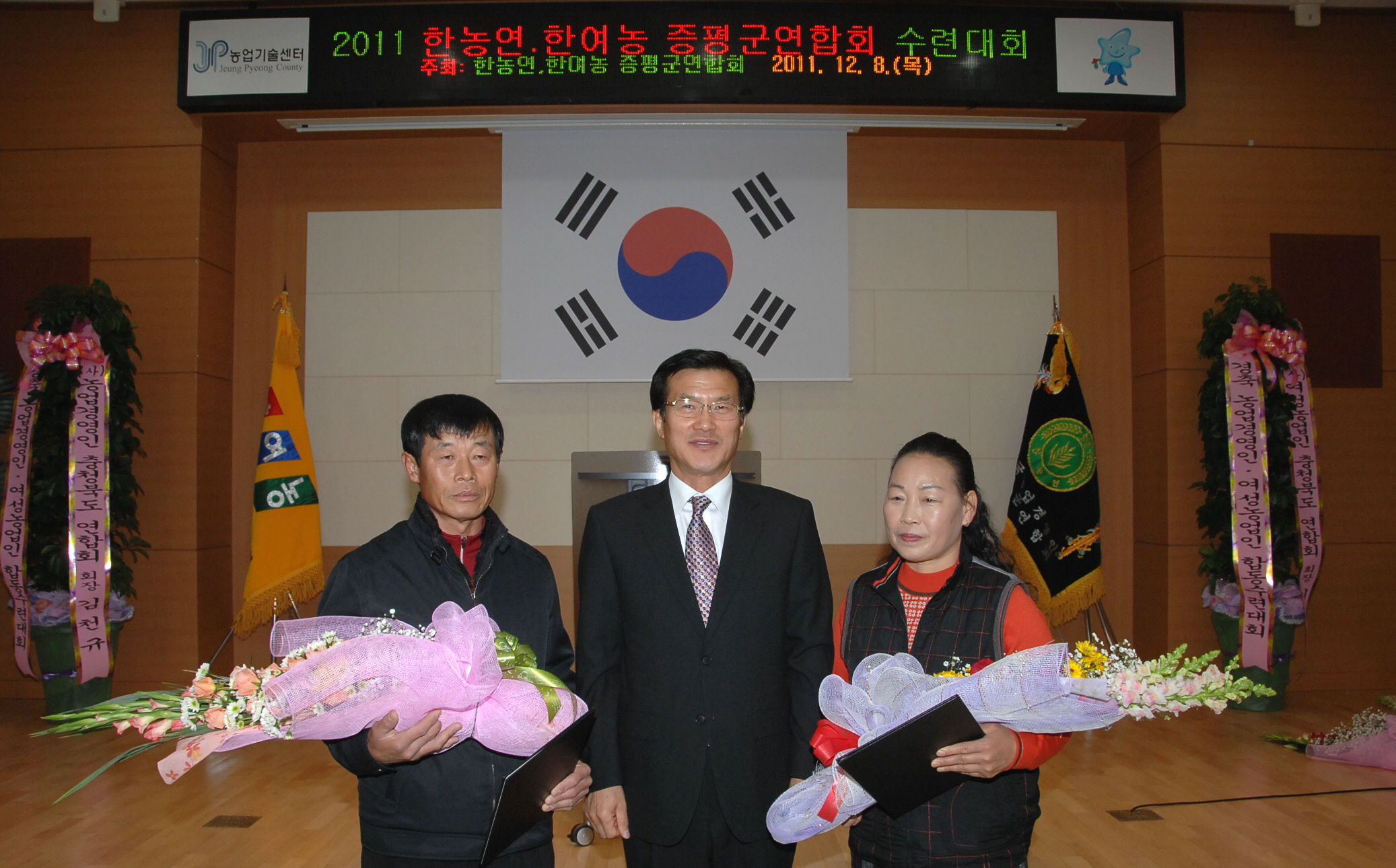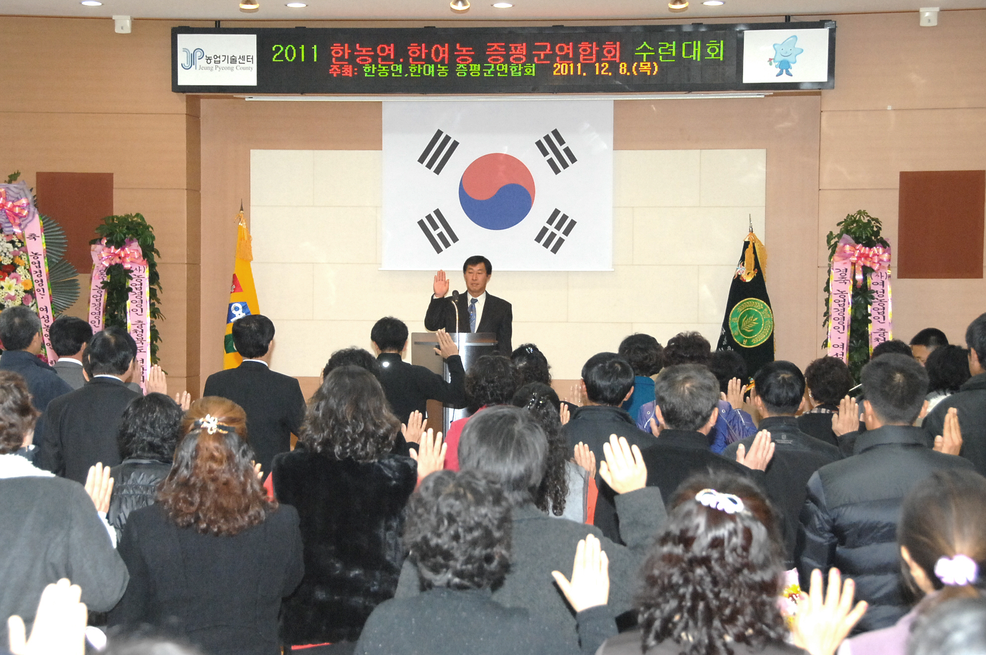 증평군 농업경영인(회장.이채희)과 여성농업인회(회장.길금환) 합동수련회가 8일 오전 11시 증평군 농업기술센터 농업인문화관에서 지역 내 기관단체장들과 남·여 농업인 회원 등 약 100여명이 참석한 가운데 열렸다.[보도자료실 참조]