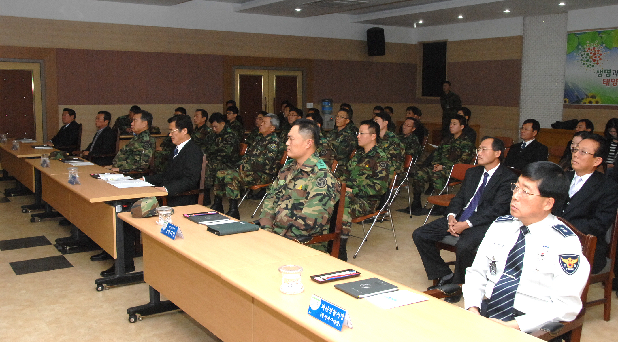 37보병사단 감사실은 9일 오전 10시 군청 2층 대회의실에서 홍성열 증평군수, 모광용 37사단 행정부사단장, 김재룡 증평군의회의장, 지백만 괴산군의회의장, 제2161부대 박홍근 대대장, 진신호 증평지구대장, 읍‧면장 등 50여명이 참석한 가운데 ‘2011년 증평‧괴산지역 예비군부대 정기감사 강평회’를 가졌다.[보도자료실 참조]