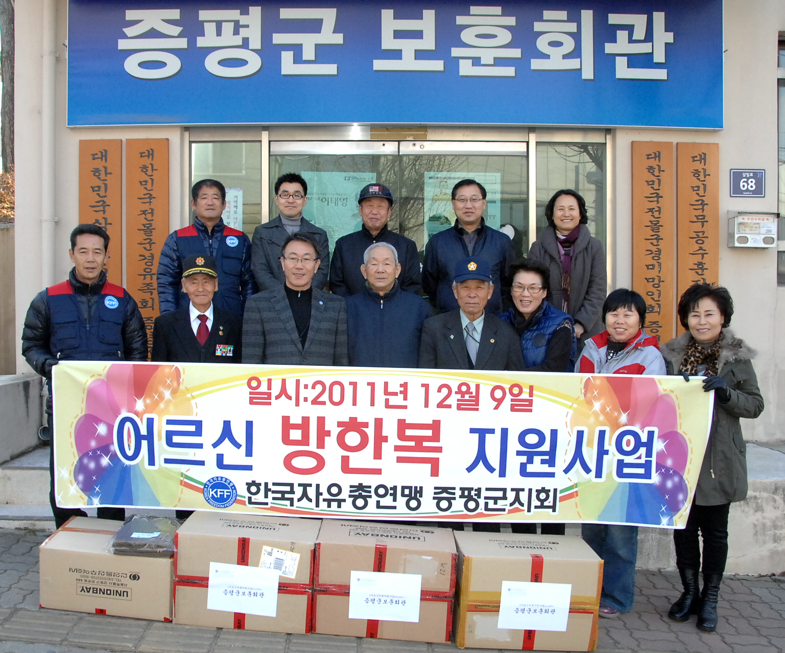 한국자유총연맹증평군지회(지회장 김덕중)는 9일 임원 및 회원 10여명이 참석한 가운데 지역 어르신들을 위한 목도리 지원 및 저소득 가정을 위한 사랑의 연탄나누기 행사를 실시했다. [보도자료실 참조]