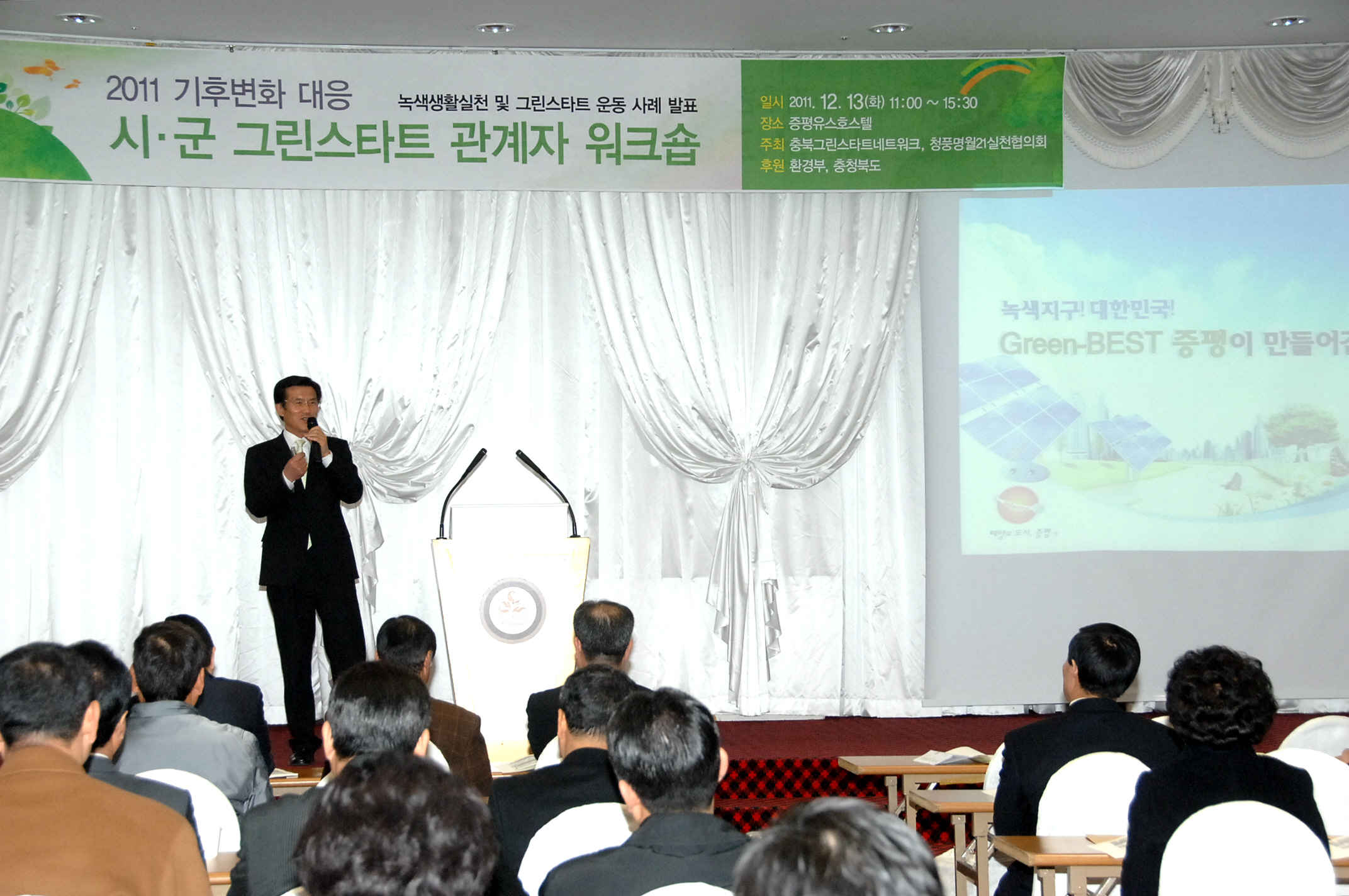 13일 증평군 충북도내 12개 시‧군 그린스타트 관계자 및 그린리더 등 120여명이 참석한 가운데 증평 유스호스텔에서는 기후변화 대응을 위한 워크숍이 열렸다. [보도자료실참조]