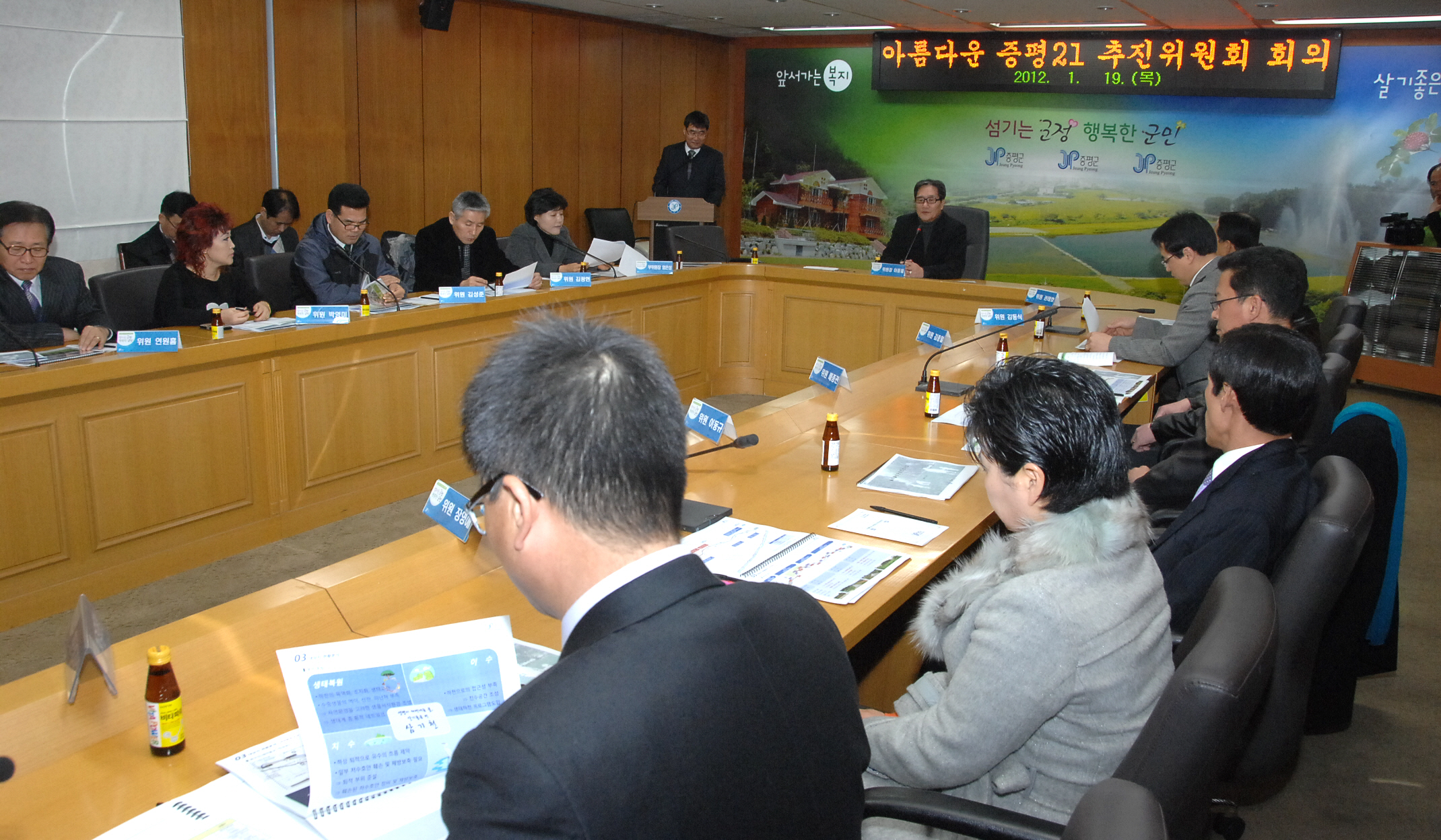 증평군은 저탄소 녹색성장 실현을 위해 19일 오전 11시 증평군청 2층 소회의실에서 아름다운 증평21 추진위원회를 열었다.[보도자료실 참조]