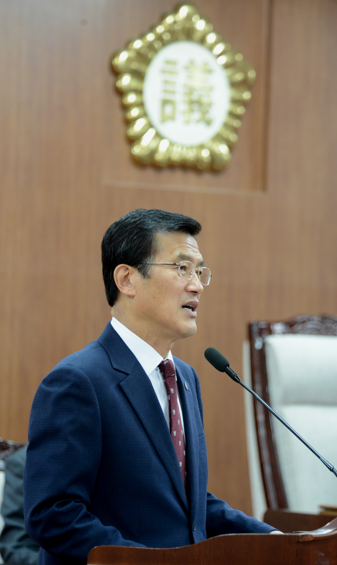 홍성열 증평군수가 25일 열린 제99회 증평군의회 정례회 제1차 본회의 시정연설에서 2015년에 추진할 군정운영방향과 6대분야 역점 시책을 밝혔다. [보도자료실 참조]