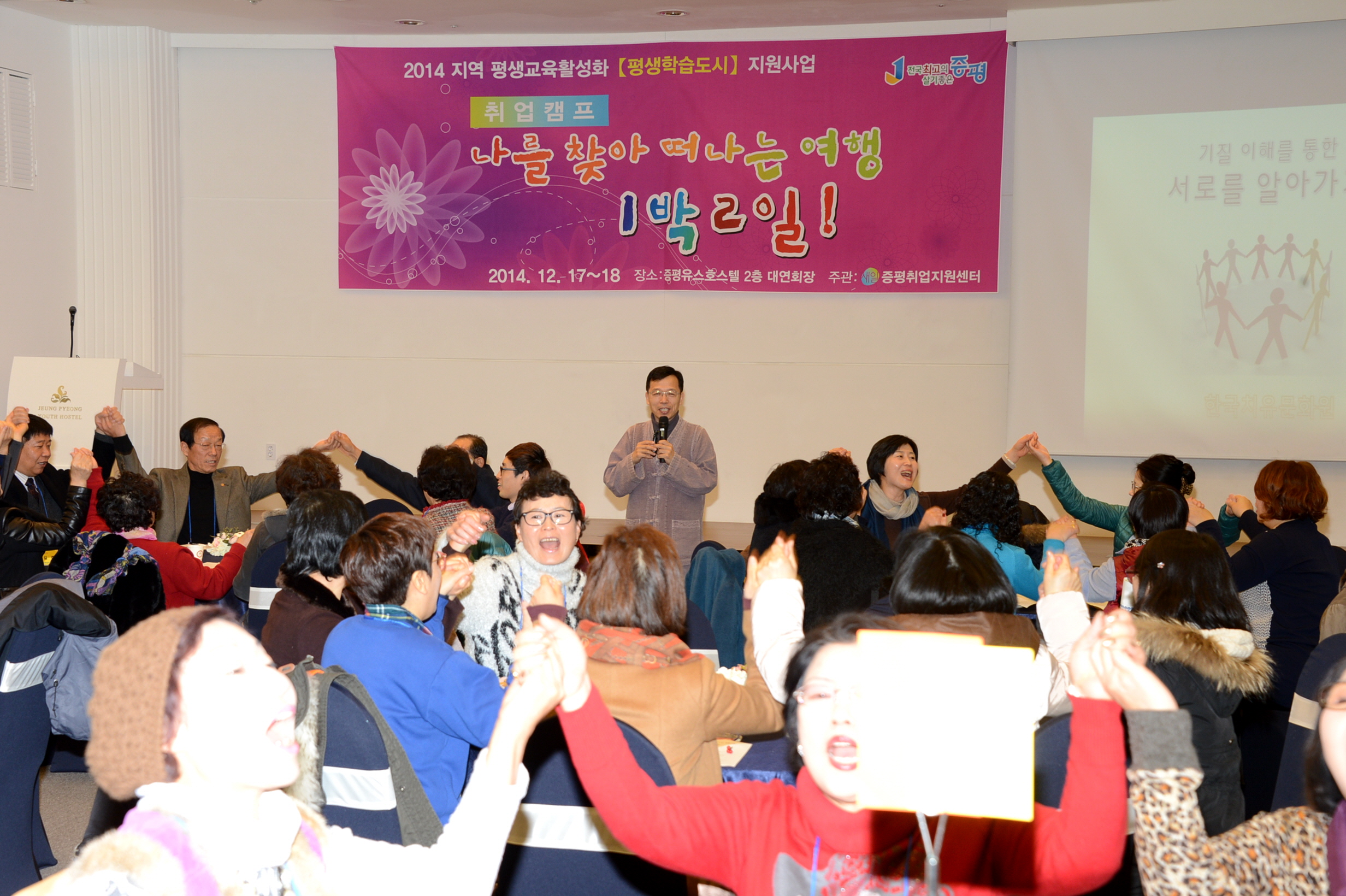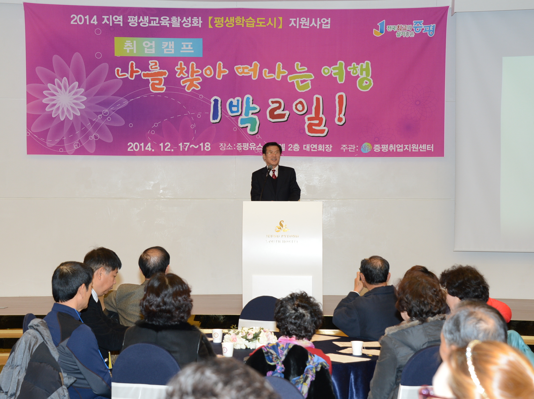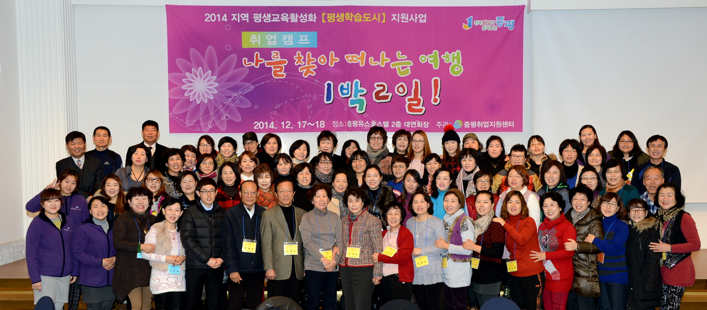증평군은 취업지원센터와 함께 지역 평생교육활성화(평생학습도시) 지원사업의 일환으로 지난 17일부터 18일까지 증평유스호스텔에서 ‘나를 찾아 떠나는 여행 1박2일’ 취업캠프를 운영했다. [보도자료실 참조]