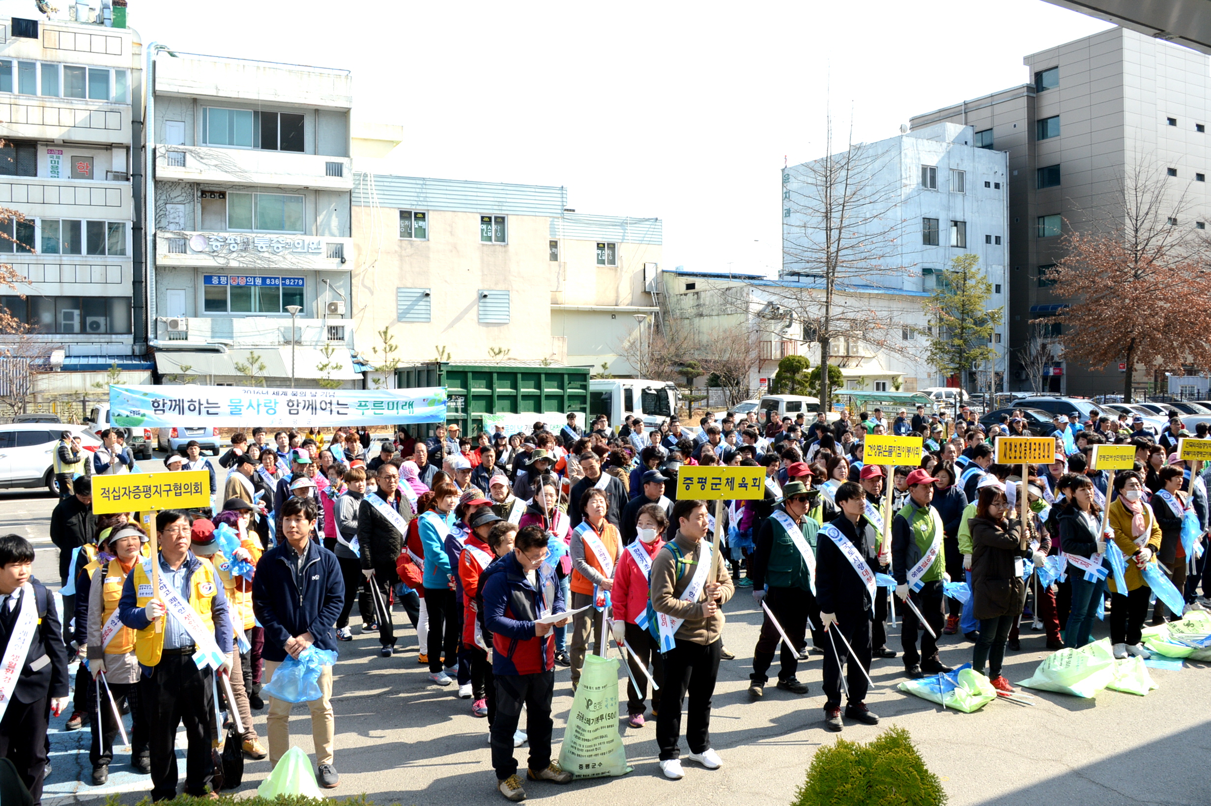 증평군은 24일 “세계 물의 날”을 맞이해 공무원, 군부대, 학교, 사회단체 등 800여명이 참여한 가운데 대대적인 국토대청결 활동을 실시하여. 증평을 방문하는 방문객들에게 밝고 깨끗한 군 이미지를 제공했다.(사진있음)