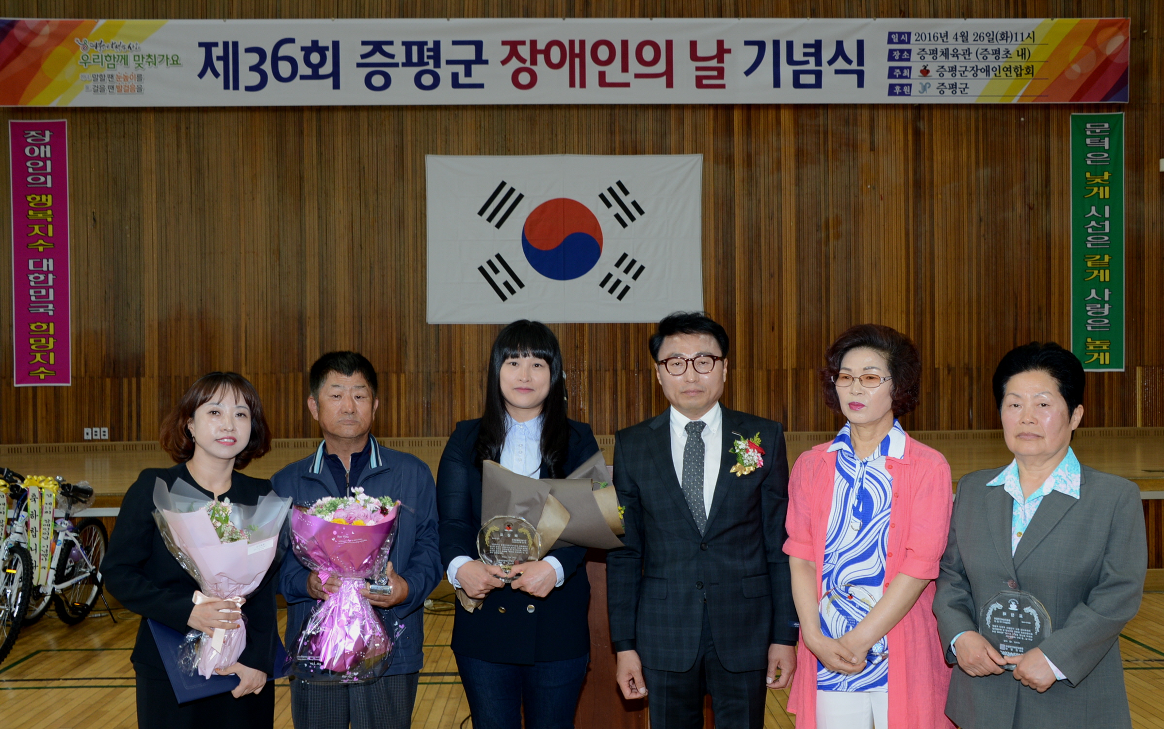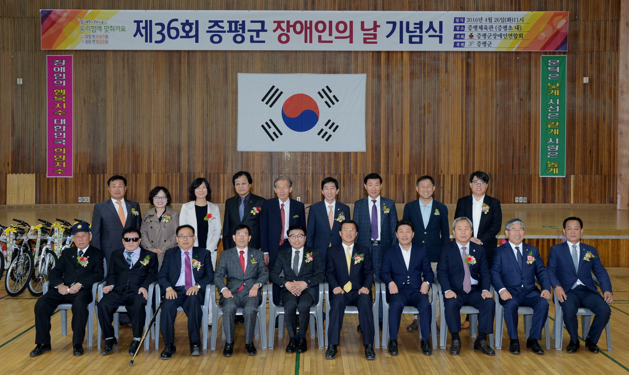 제36회 장애인의 날 기념행사가 26일 오전 11시 증평체육관에서 증평군장애인연합회(회장 연영찬) 주관으로 홍성열 증평군수, 우종한 군 의장을 비롯해 장애인 가족 등 700여명이 참석한 가운데 열렸다.(보도자료실 참조)