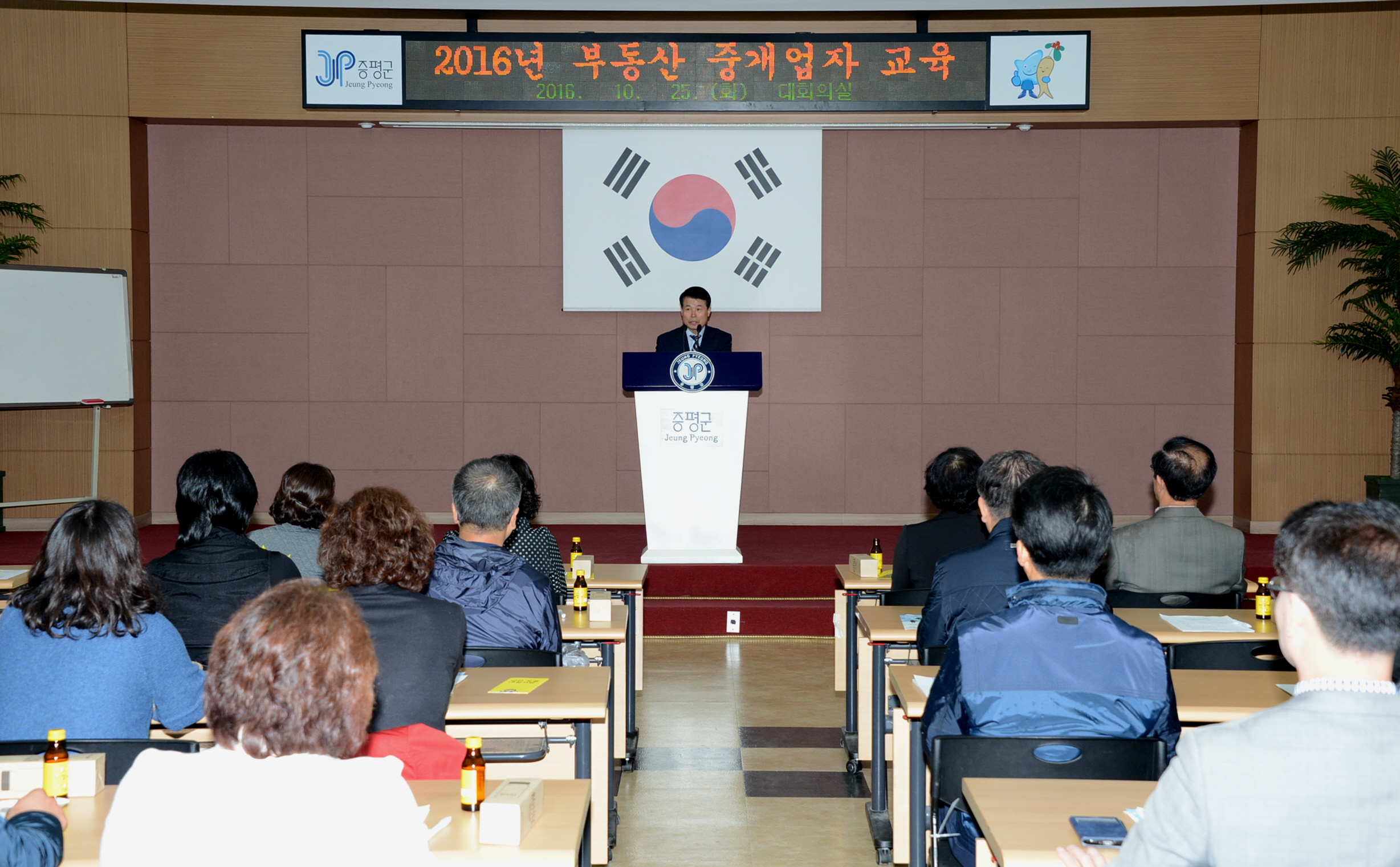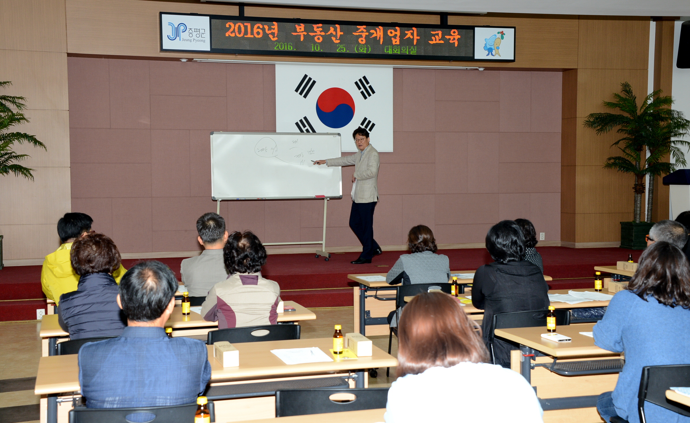 증평군은 25일 오전 10시 군청 대회의실에서 건전한 부동산 거래질서 확립을 위해 부동산 중개업자 및 소속 직원 60명이 참석한 가운데 부동산 중개업자 교육을 실시 했다.(보도자료실 참조)