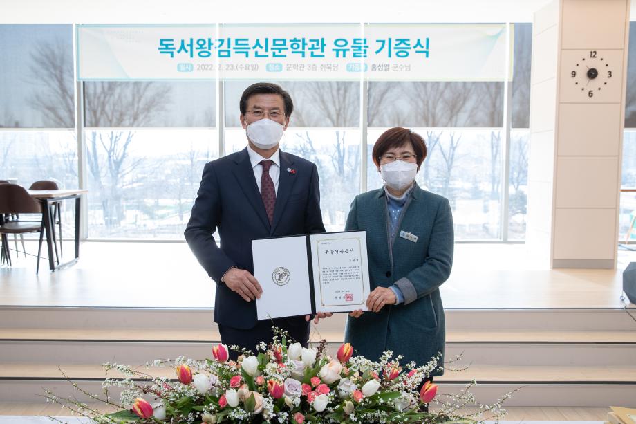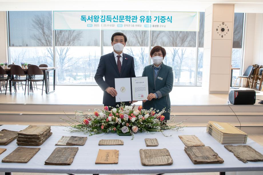 홍성열 증평군수가 집안대대로 내려온 유물 28점을 독서왕김득신문학관에 기증했다.