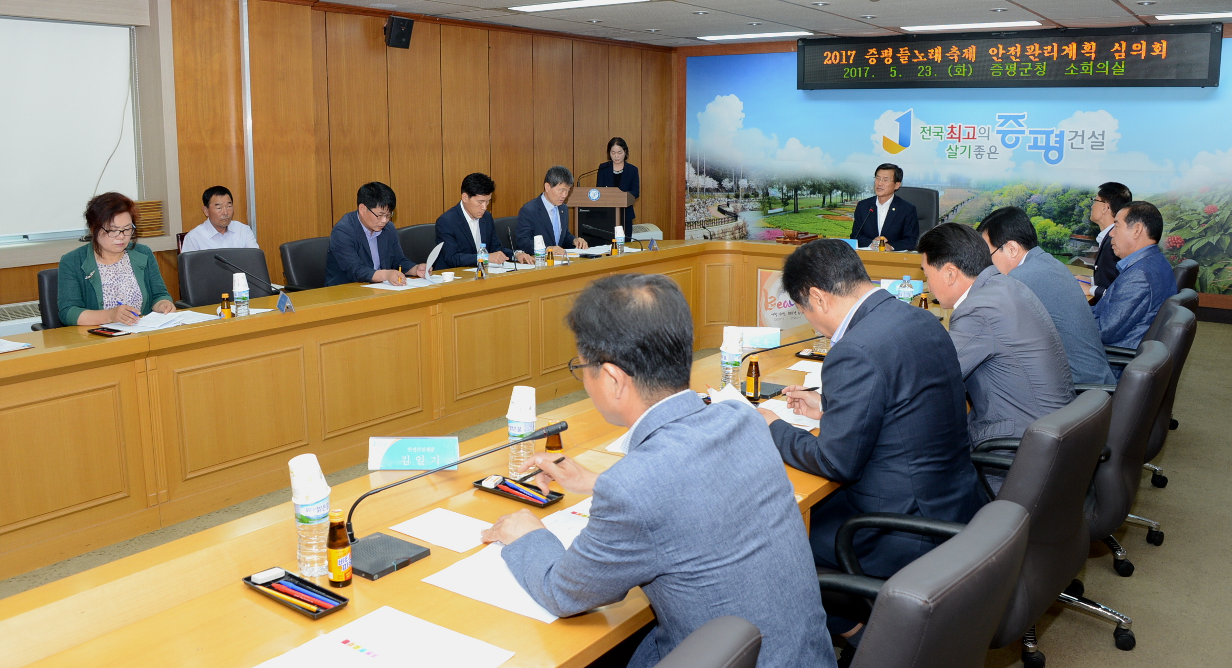 증평군은 다음달 10~11일까지 이틀간 증평읍 남하리 증평민속체험박물관 일원에서 열리는‘제17회 증평들노래축제’와 관련해 안전심의위원회를 열고 안전한 축제를 다짐했다.(보도자료실 참조)