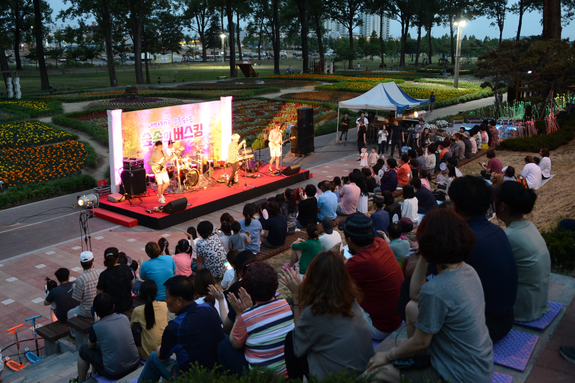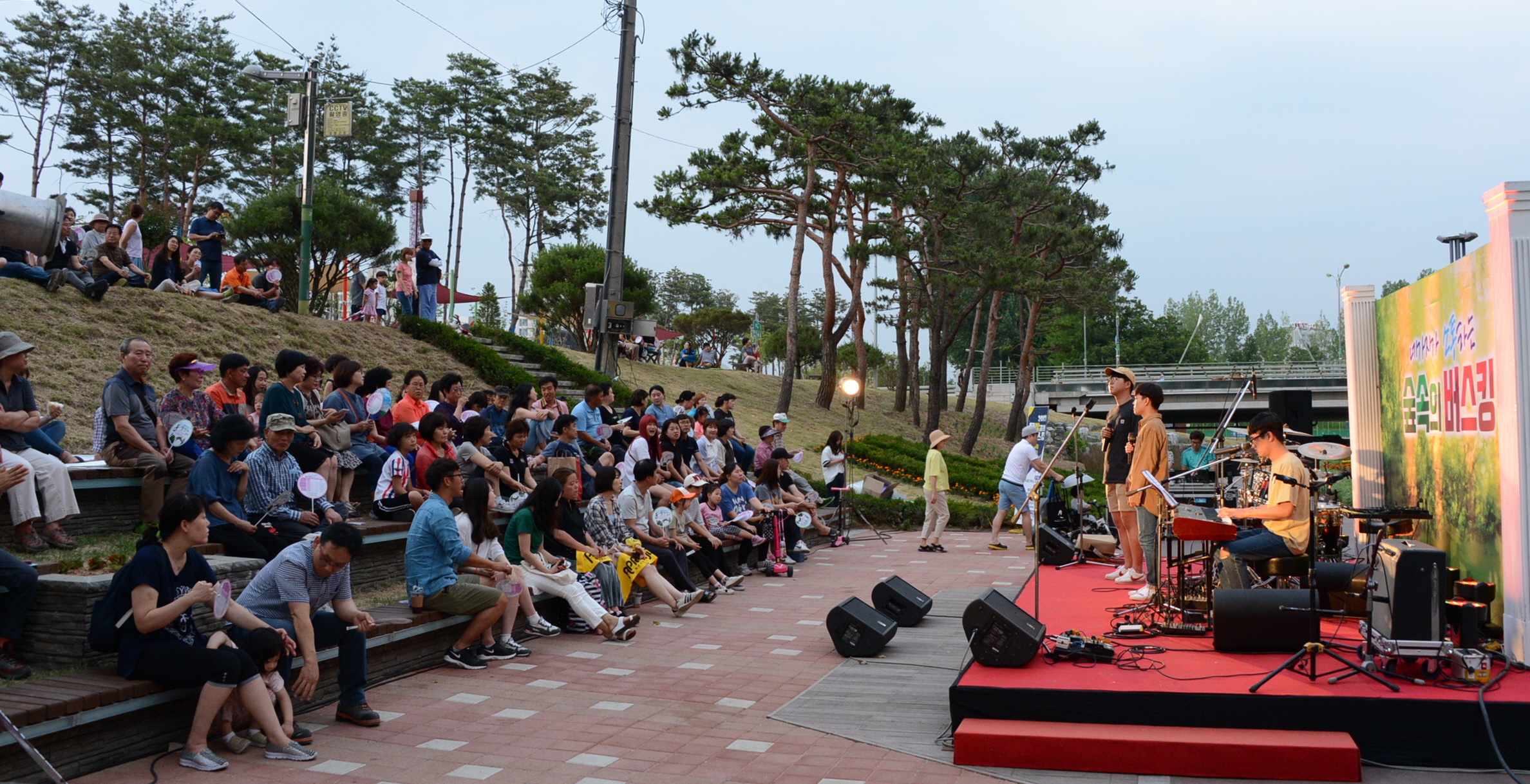 증평군 보강천 물빛공원에서 열리는 버스킹 공연이 증평군의 공연 문화를 바꾸고 있다.(보도자료실 참조)