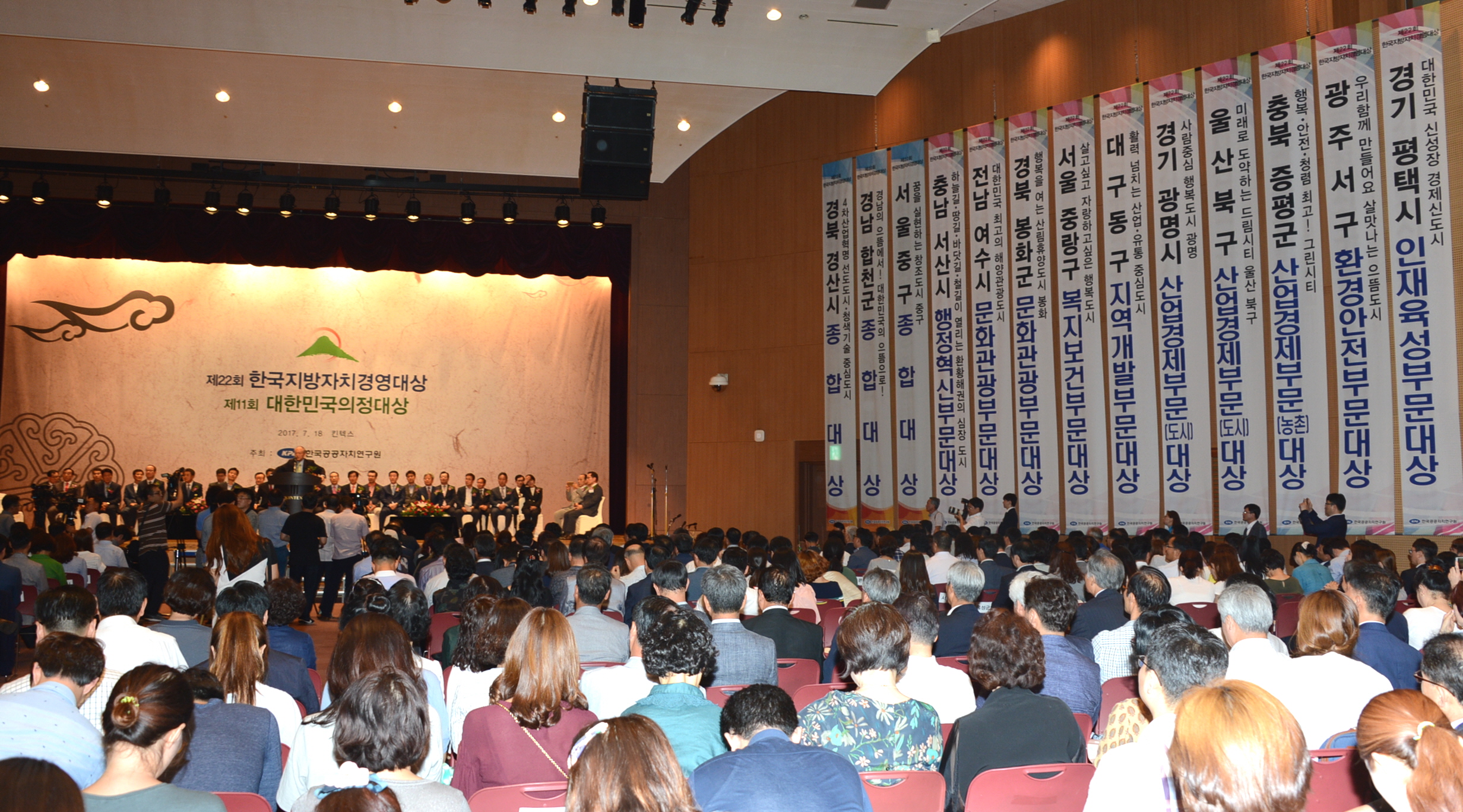 증평군이 18일 (사)한국공공자치연구원 주관으로 고양시 킨텍스에서 열린 제22회 한국지방자치경영대상 시상식에서 산업경제(농촌)부문 대상을 수상했다.(보도자료실 참조)