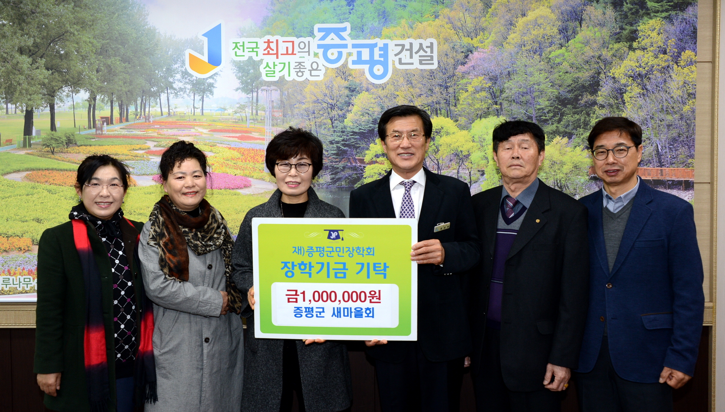 증평군새마을회(회장 정현숙)는 20일 증평군청을 방문해 증평군민장학회(이사장 홍성열 증평군수)에 장학금 100만원을 기탁했다.(보도자료실 참조)