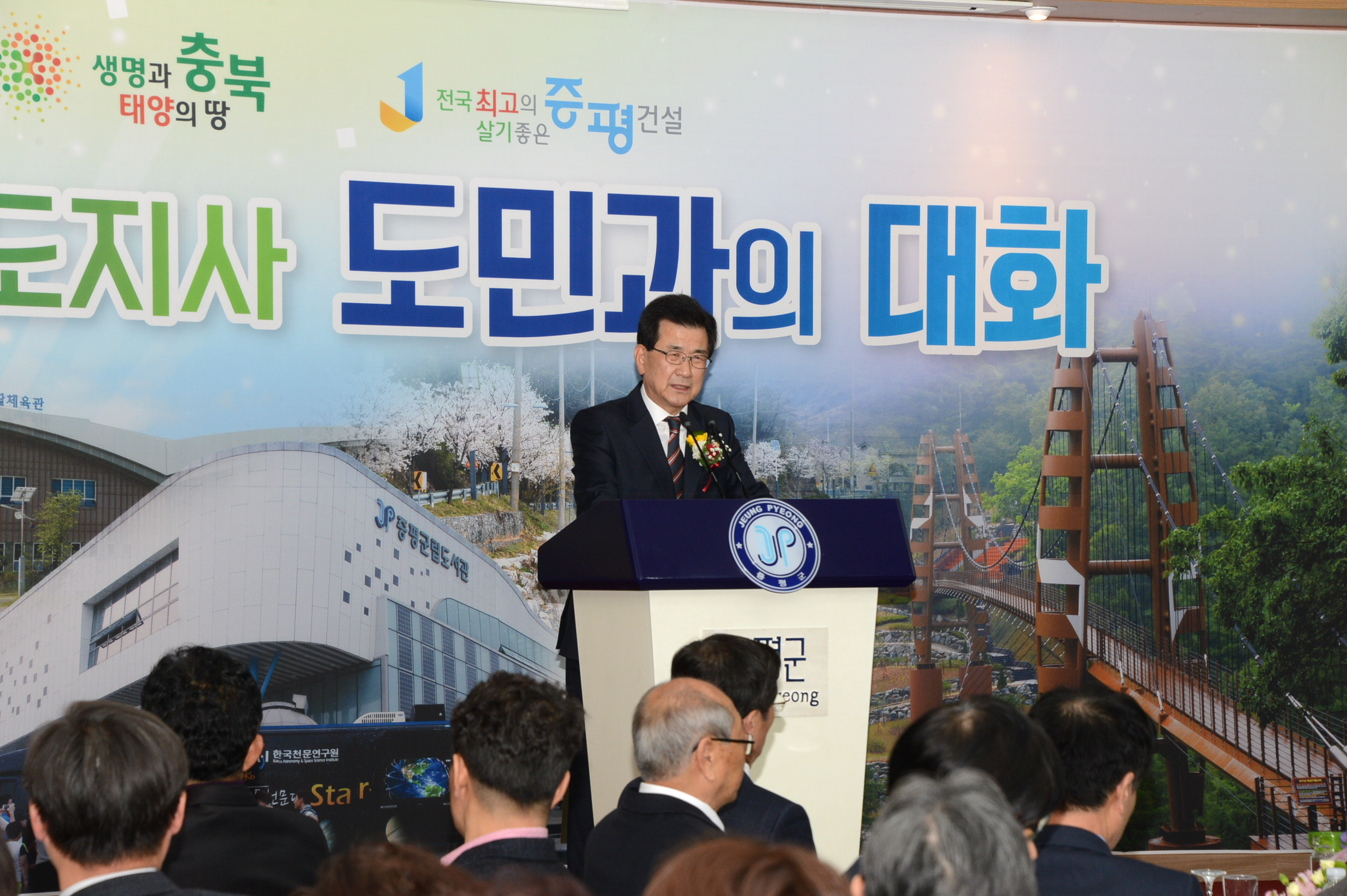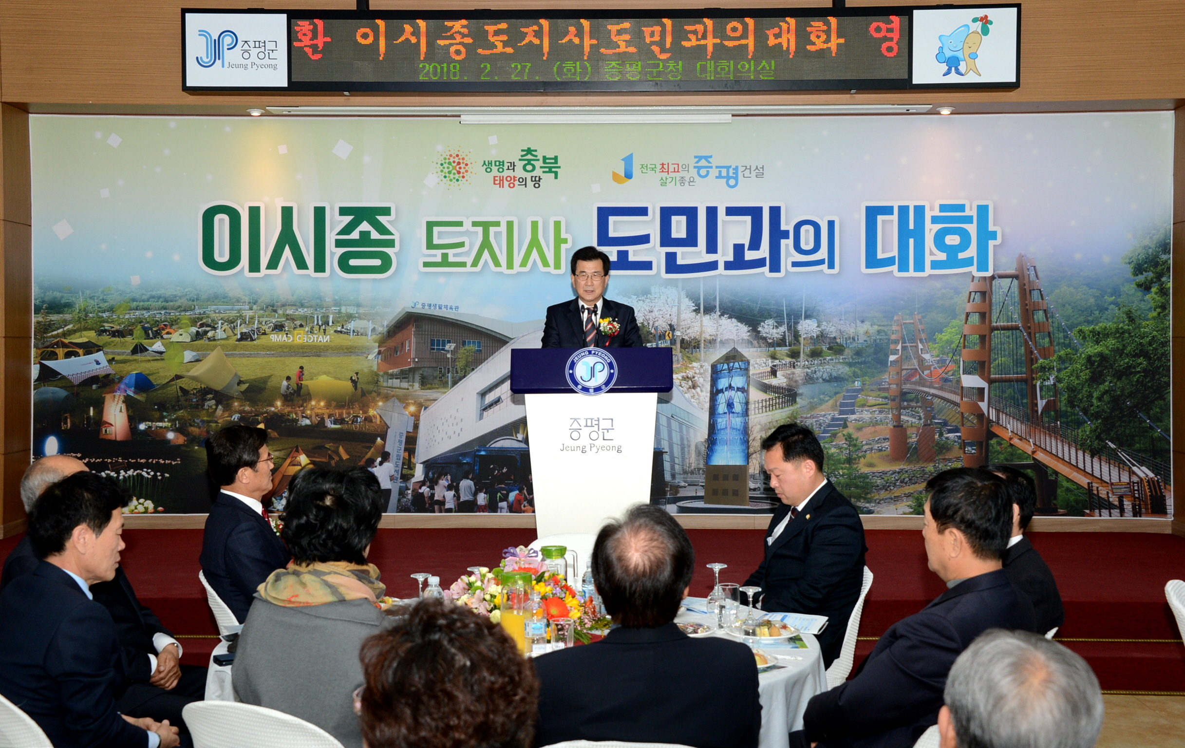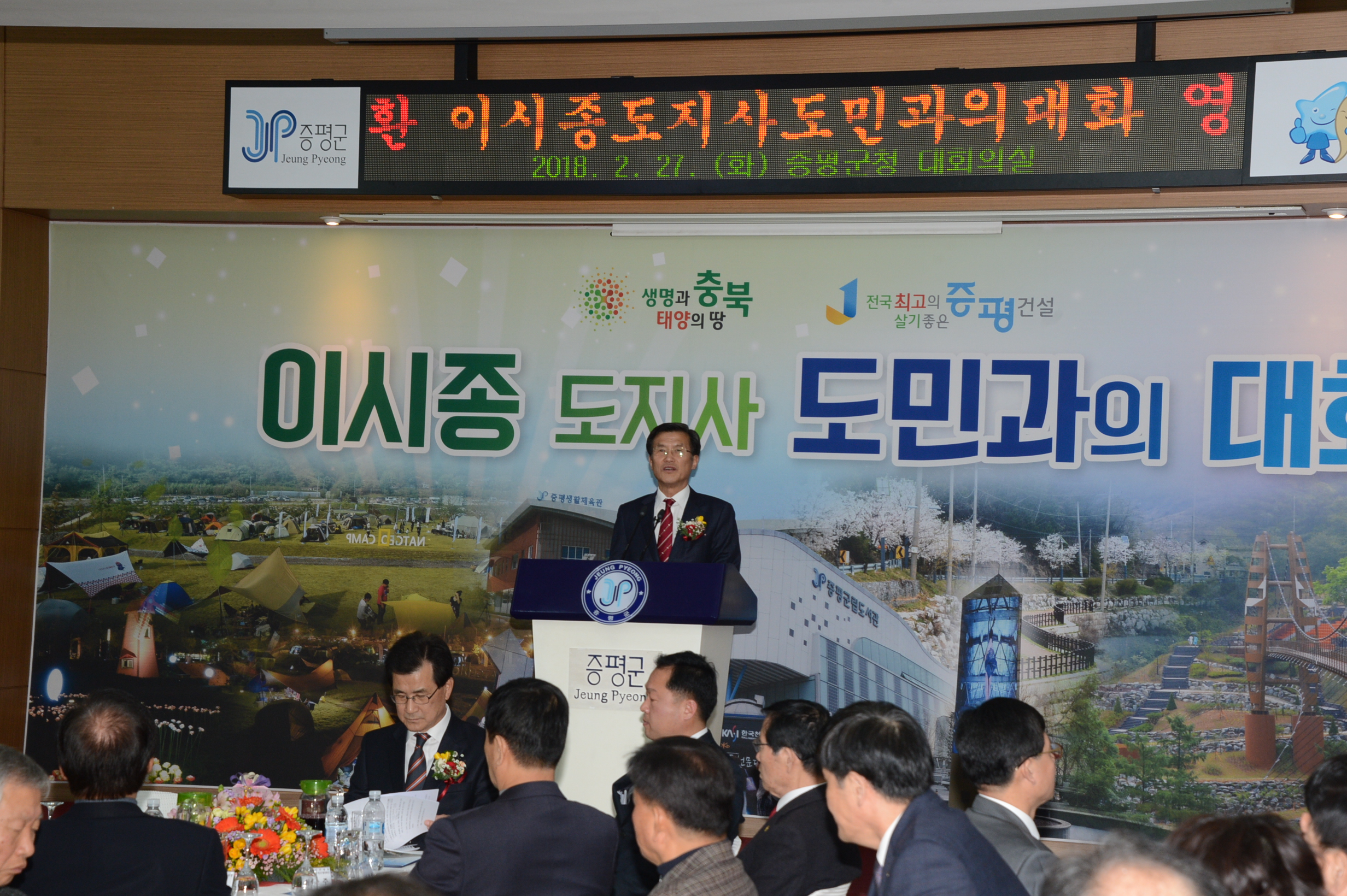 이시종 도지사가 27일 증평군민을 대상으로 2018년 도정 설명 및 주민 건의사항을 듣기 위해 증평군을 공식 방문했다.(보도자료실 참조)