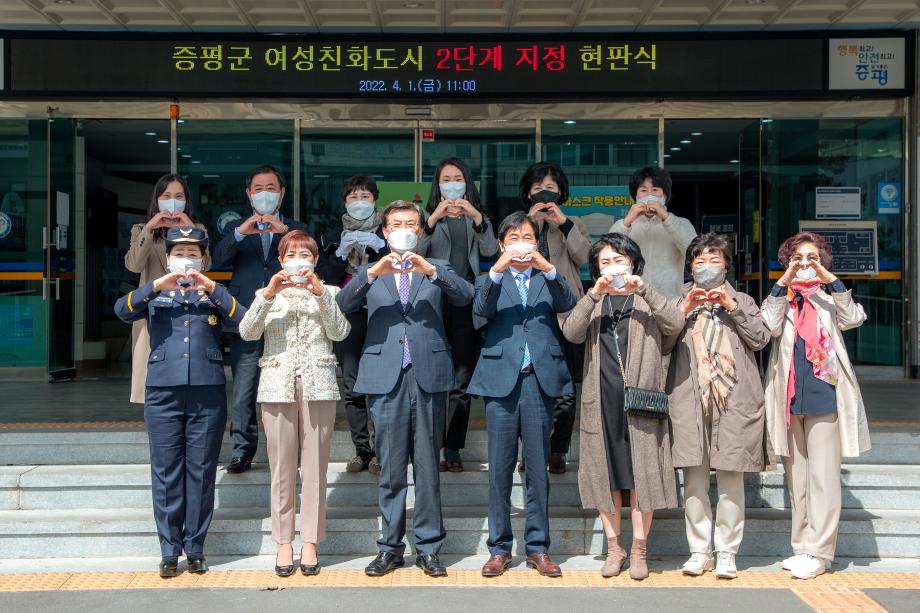 증평군은 1일 군 청사 본관에서 여성친화도시 2단계 재지정 현판식을 진행했다.