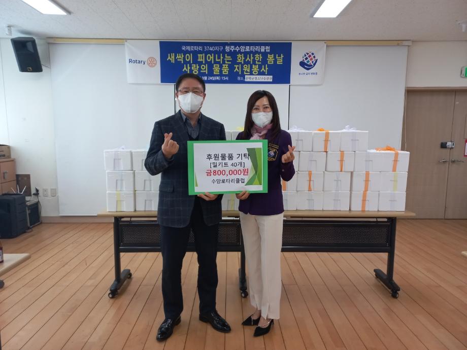 증평군청소년수련관(관장 김병노) 방과후아카데미는 24일 세미나실에서 청주 수암로타리클럽과 사랑의 물품(밀키트) 전달식을 가졌다.