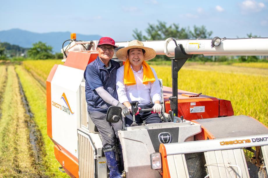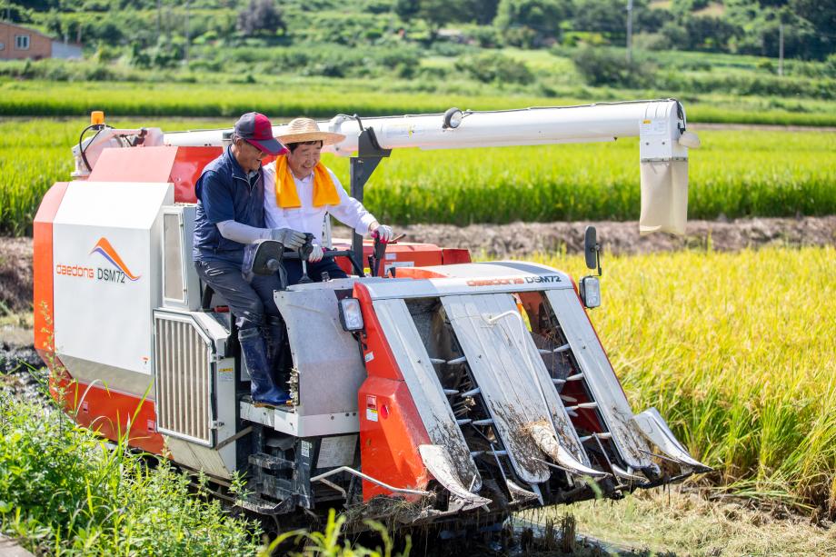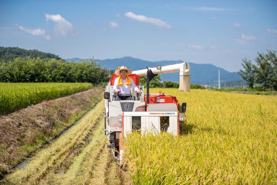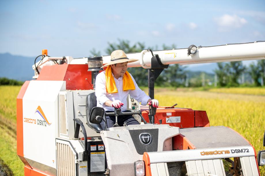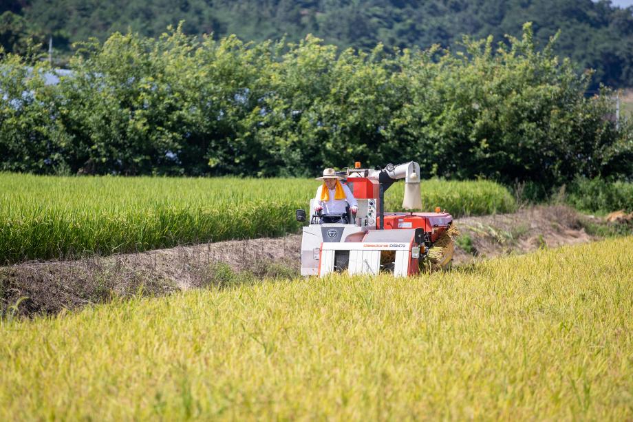 증평군은 1일 증평읍 남차리 김태복 농가 논 0.6ha에서 올해 첫 벼 베기를 실시했다고 밝혔다.