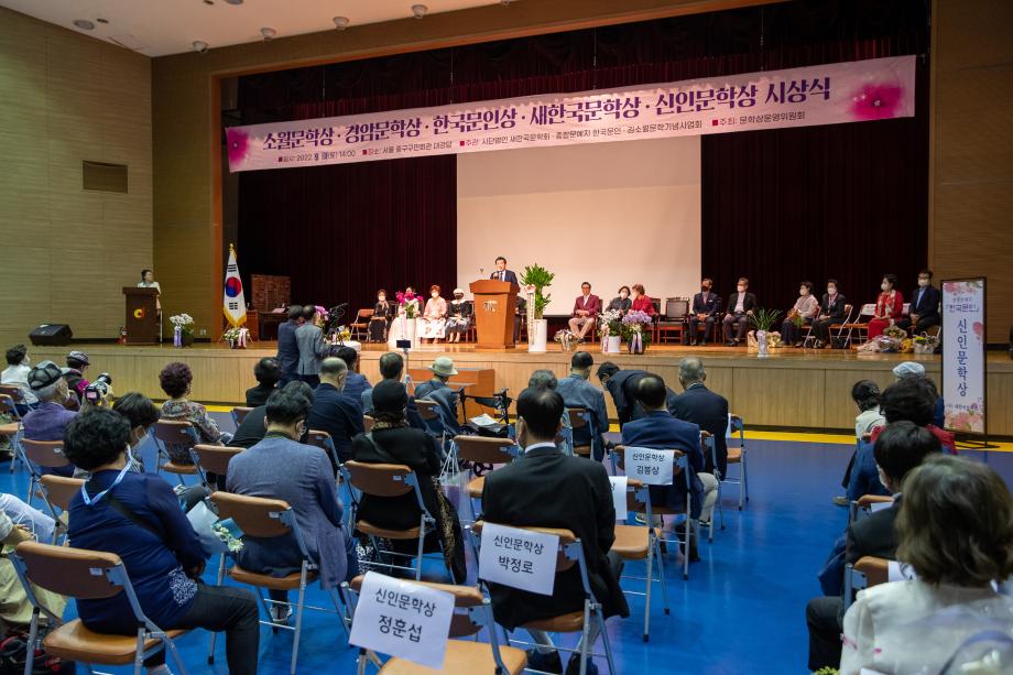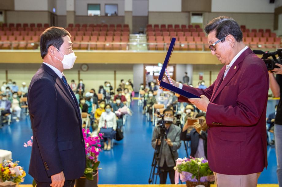 이재영 증평군수가 지난 3일 서울 중구 구민회관에서 개최된 ‘2022년 하반기 (사)새한국문학회 문학상 시상식’에서 가장 문학적인 정치인상 및 한국문인 수필부문 신인문학상을 함께 수상했다.