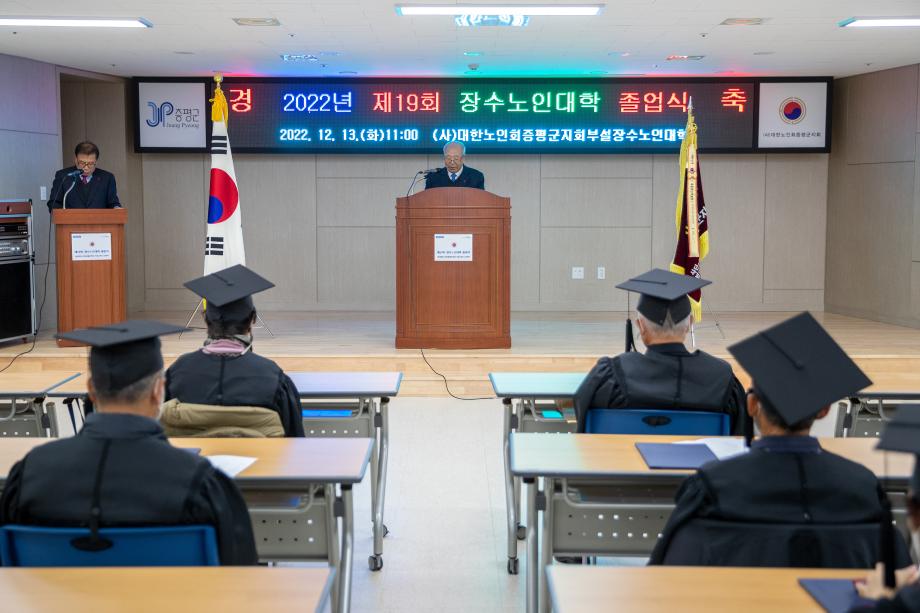 증평군은 13일 증평군 노인지회(회장 연훈흠) 주관으로 지회 회의실에서‘제19회 장수노인대학 졸업식’을 개최했다.