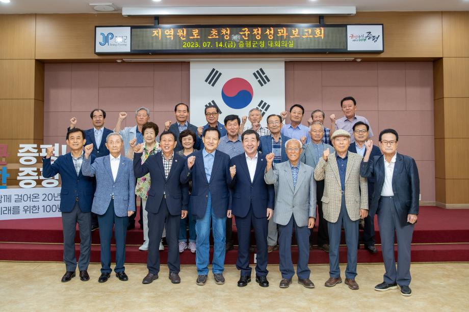 증평군은 14일 증평군청 대회의실에서 민선 6기 취임 1주년 기념 지역원로 초청 군정 성과 보고회를 가졌다.