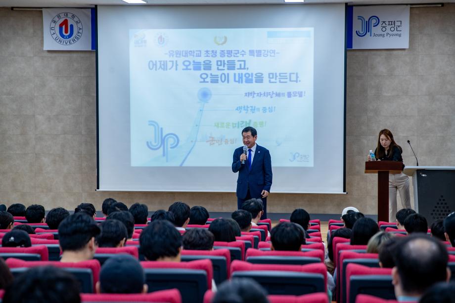 이재영 증평군수는 지난 21일 유원대학교에서 “어제가 오늘을 만들고, 오늘이 내일을 만든다”라는 주제로 특강을 진행했다.