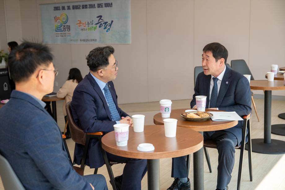 이재영 증평군수는 지난 21일 도-시군 상생발전을 위한 지역 현안 사업 점검에 나선 김명규 충북도 경제부지사를 만났다.