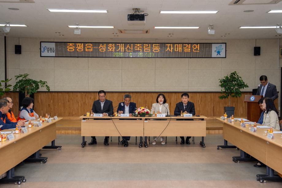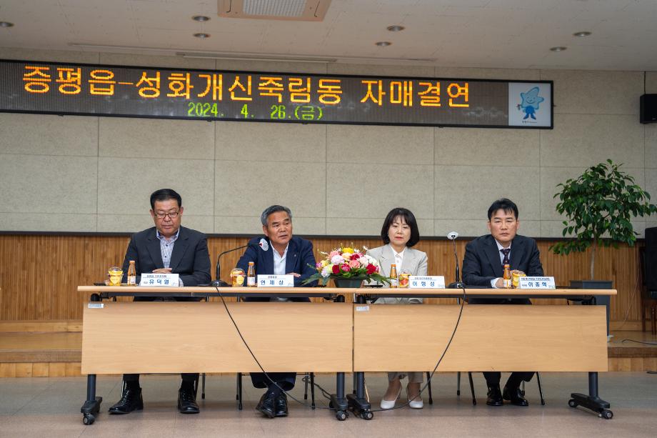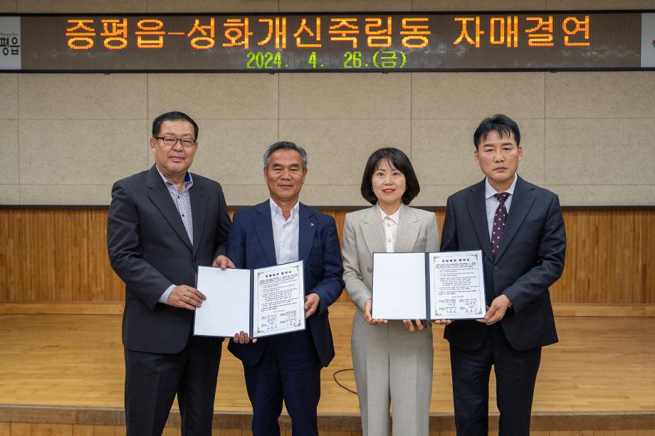충북 증평군은 26일 증평읍 주민자치회가 청주시 성화개신죽림동 주민자치위원회와 주민자치(위원)회 간 화합과 협력을 위한 자매결연을 체결했다고 밝혔다.