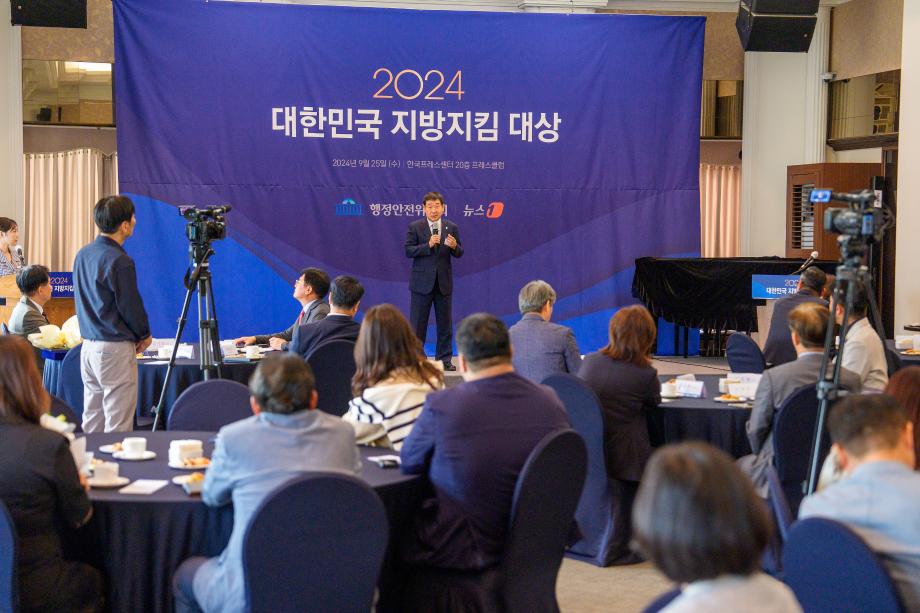 충북 증평군이 25일 한국프레스센터 프레스클럽에서 열린‘2024 대한민국 지방지킴 대상’시상식에서‘인프라 개선 대상’을 수상했다.