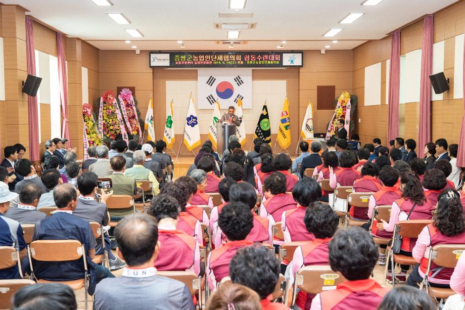 증평군은 19일 농업기술센터 농업인문화관에서 홍성열군수, 장천배군의장을 비롯해 농촌지도자회, 생활개선회, 농업경영인회, 여성농업인회, 쌀전업농회, 4-H회, 축산단체협의회 회원 등 250여명이 참석한 가운데 농업인 단체 합동수련대회를 개최했다.