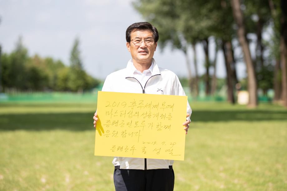 홍성열 증평군수가 세계 무예의 조화라는 주제로 충주시에서 개최되는‘2019 충주세계무예마스터십’대회성공기원 SNS 릴레이에 홍보 주자로 참여했다.