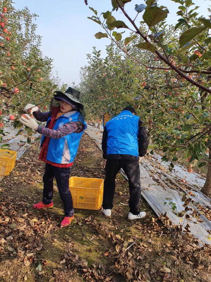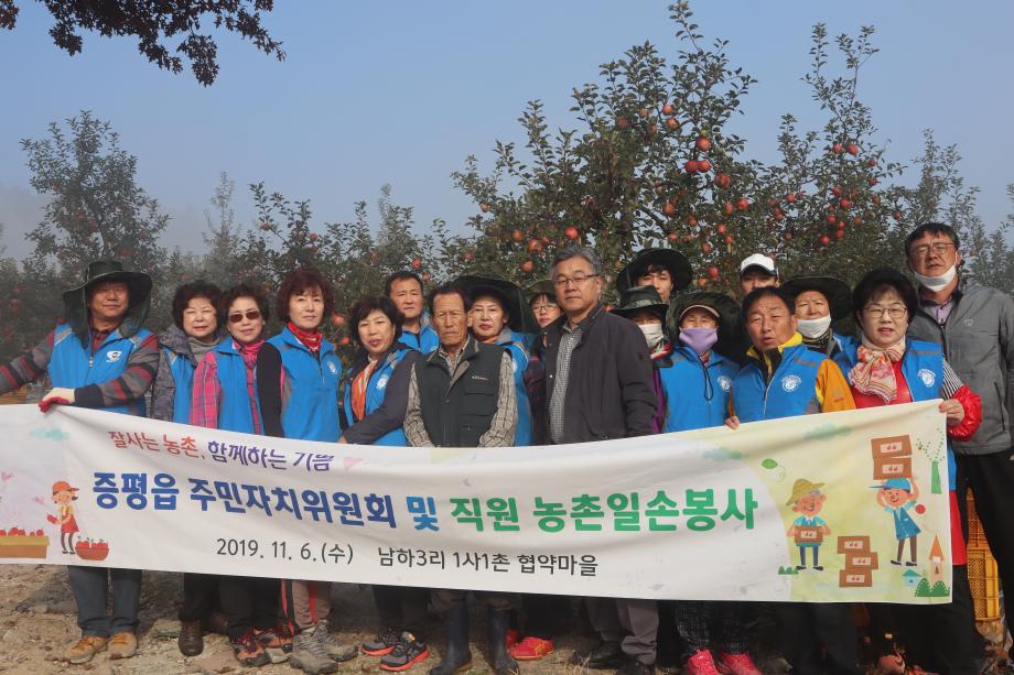 증평읍주민자치위원회(위원장 연태희)와 증평읍 직원 30여 명은 6일 증평읍 남하리 일원 사과농가를 찾아 농번기 일손 돕기 봉사활동을 펼쳤다.
