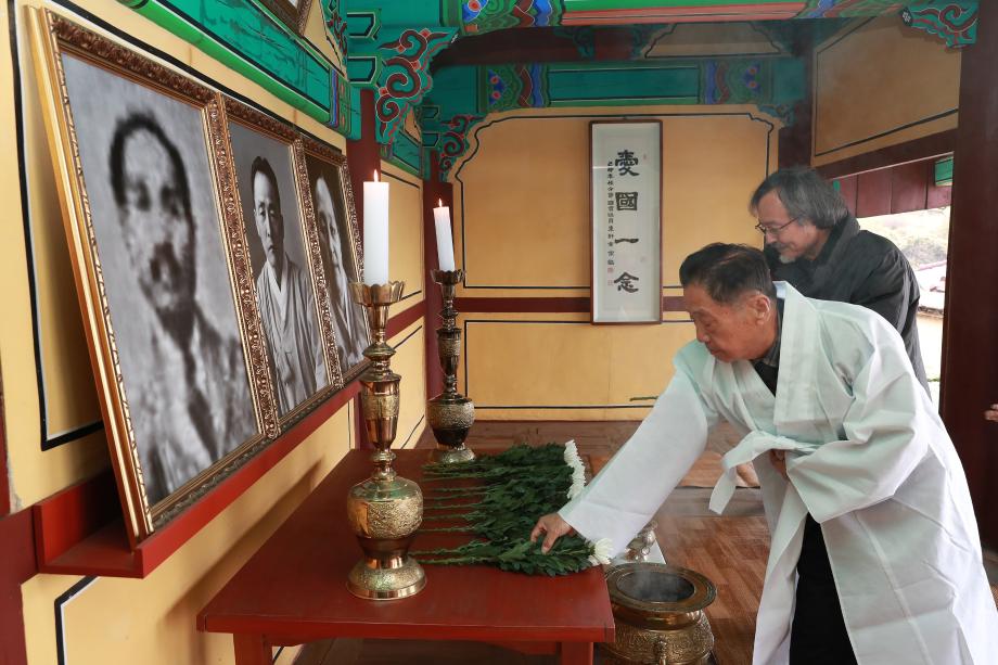 증평 출신 애국지사 연병환(1878~1926), 연병호(1894~1963), 연미당(1908~1981) 선생의 추모제가 16일 증평군 도안면 석곡리 명덕정사에서 거행됐다.