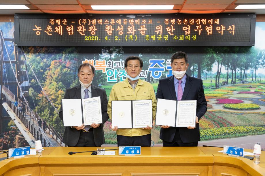 증평군-(주)블랙스톤에듀팜리조트-증평농촌관광협의체, 농촌체험관광 활성화 업무협약