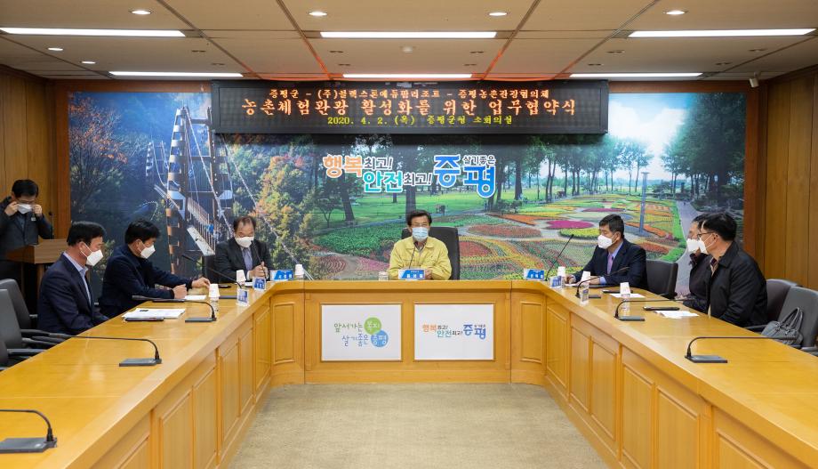 증평군이 농촌체험관광 활성화를 위해 ㈜블랙스톤에듀팜리조트(대표이사 원용권, 이하 에듀팜리조트), 증평농촌관광협의체(회장 권혁재)와 손을 맞잡았다.