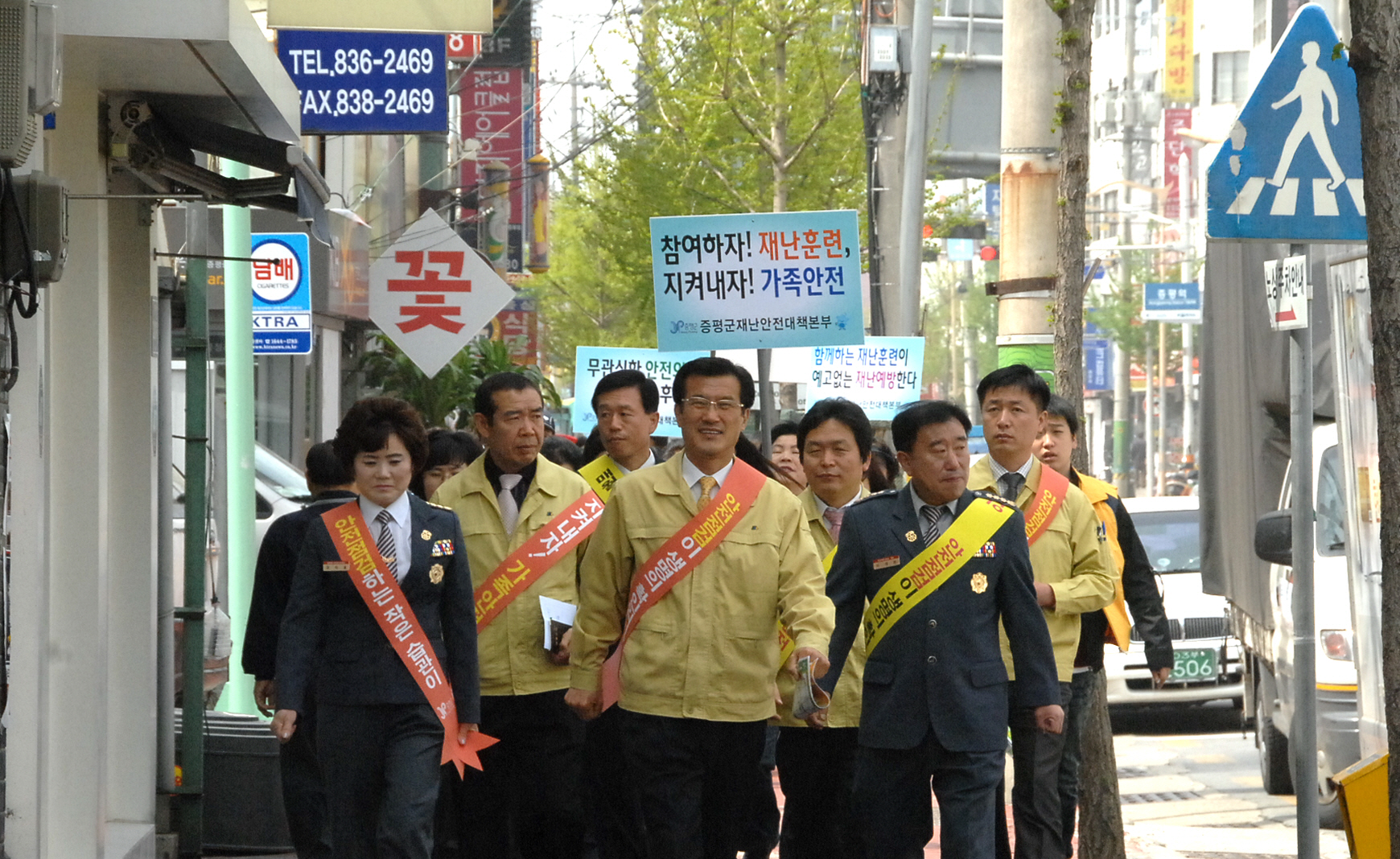 증평군재난안전대책본부(본부장 홍성열군수)는 2011 재난대응 안전한국훈련 첫째 날인 2일 오전 10시 소방공무원, 공무원, 의용소방대연합회를 비롯한 7개 재난안전네트워크 단체회원 총 150명이 참가한 가운데 재난안전 사고예방 가두캠페인을 전개했다. [보도자료실 참조]
