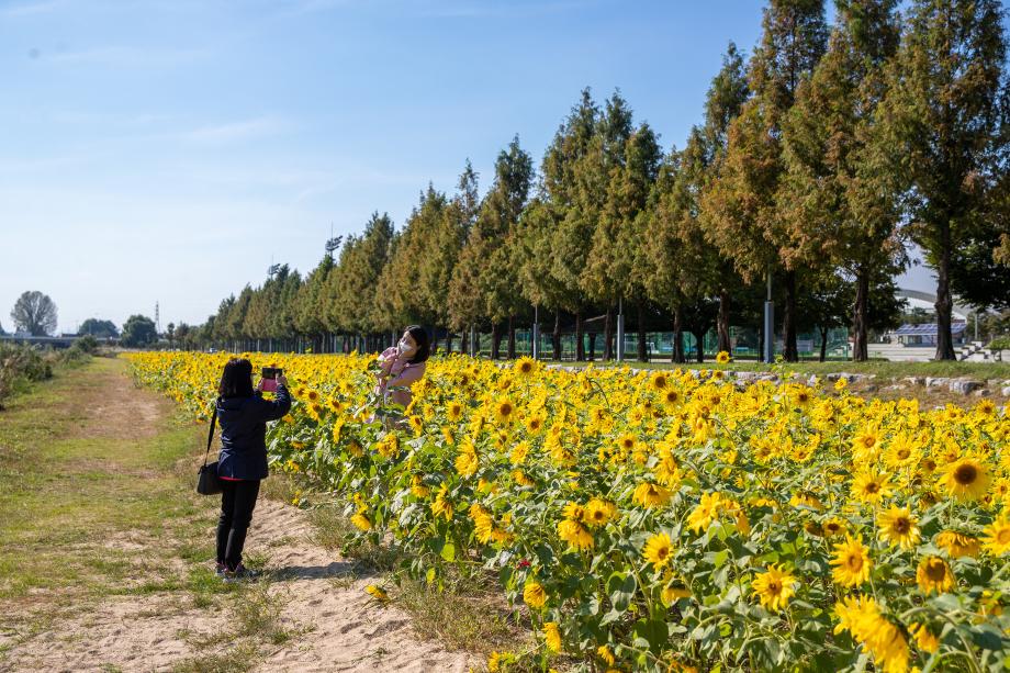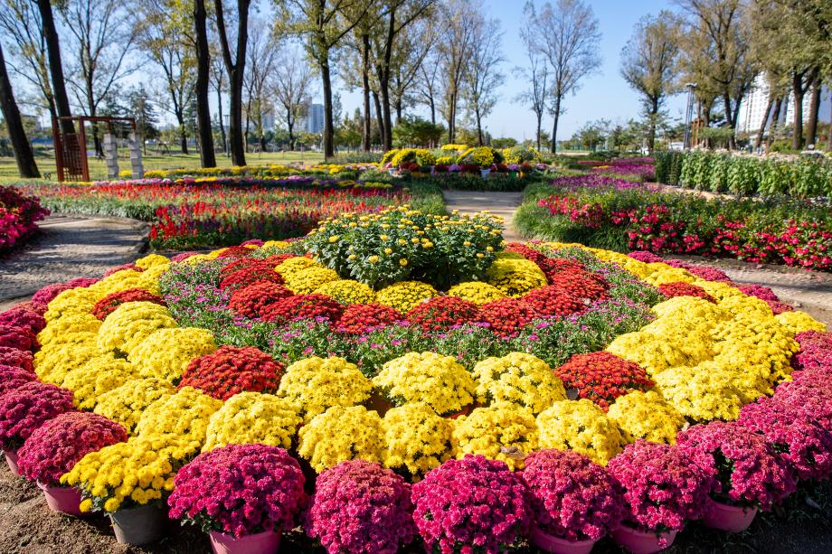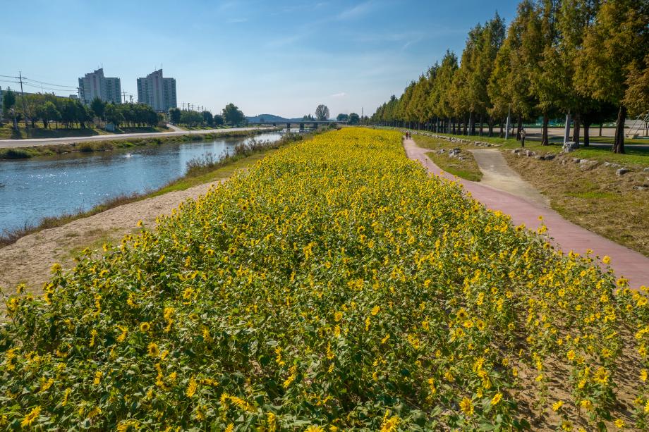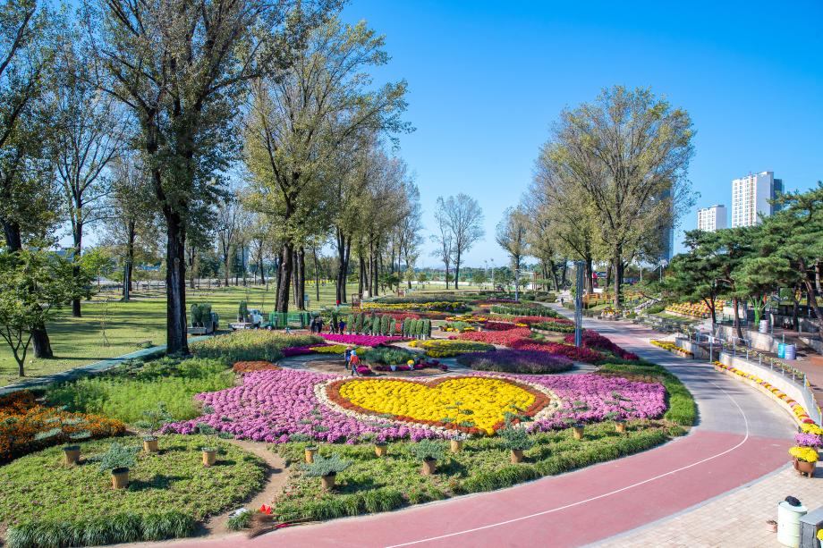 증평군이 본격적인 가을을 맞이해 보강천 미루나무 숲과 주요 도로변에 형형색색의 국화 및 코스모스 등 4만 본을 식재했다.