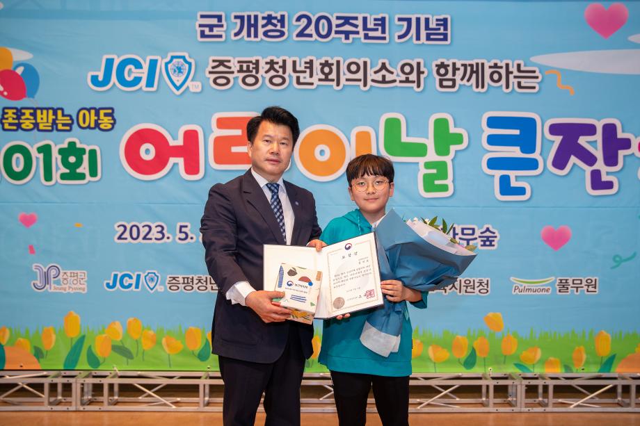 증평군은 5일 증평종합스포츠센터에서 ‘제101회 어린이날 기념 행사’를 어린이, 부모, 가족, 일반시민 등 1500여 명이 참여한 가운데 성황리에 마쳤다.