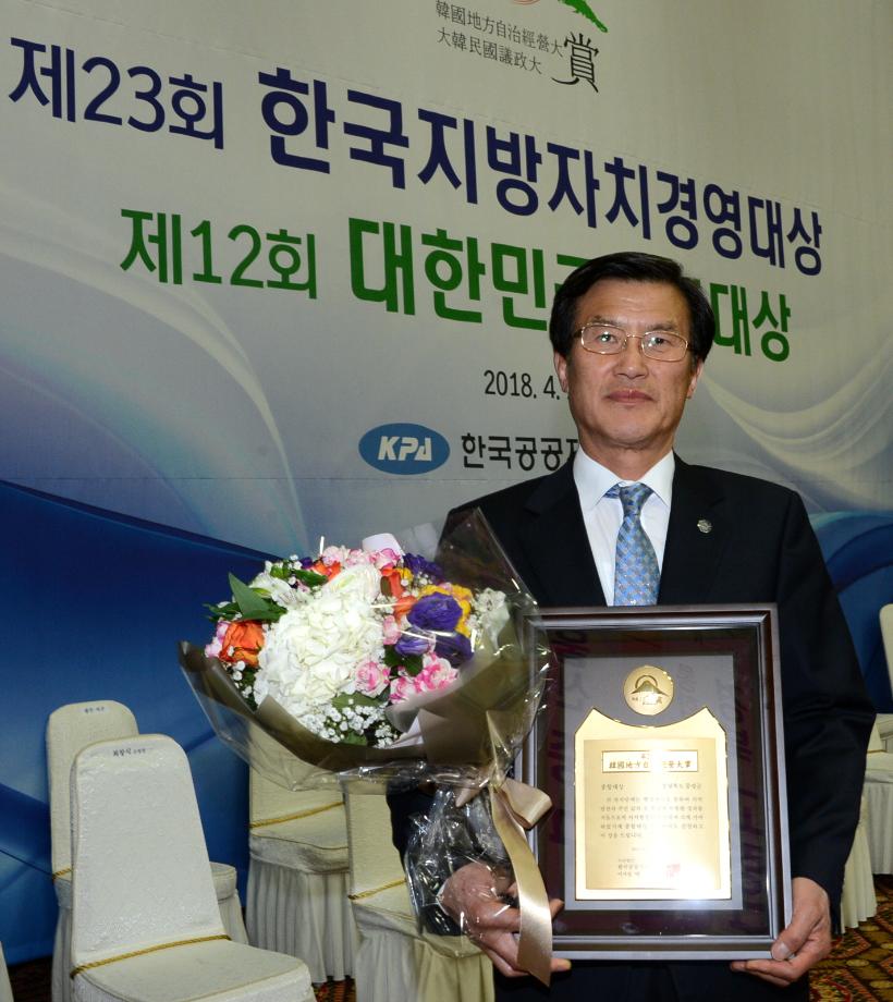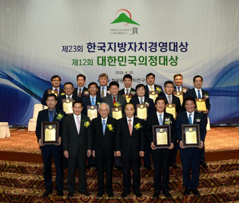 증평군이 10일 서울시 영등포구 공군회관에서 한국공공자치연구원이 주관한‘제23회 한국지방자치경영대상 시상식’에서 최고의 영예인 종합대상을 수상했다.(보도자료실 참조)