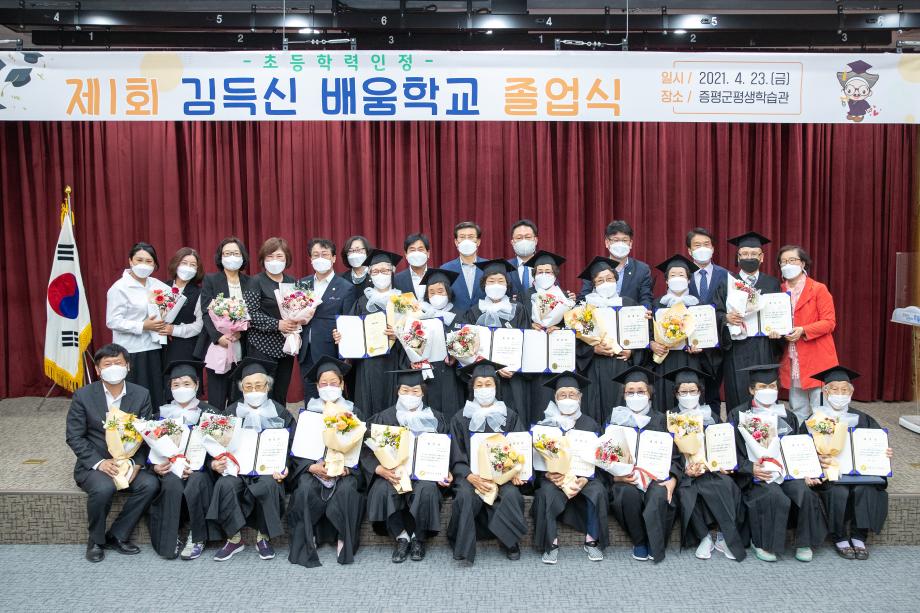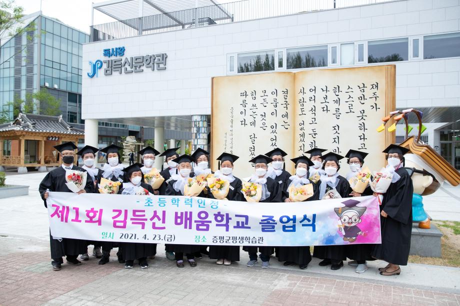 증평군평생학습관은 지난 23일 증평군립도서관 3층 다목적실에서 학력인정문해교실‘김득신 배움학교 졸업식’을 가졌다.
