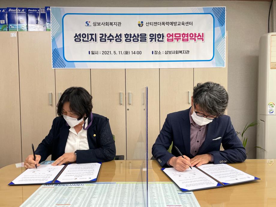삼보사회복지관(관장 박경화)과 샨티젠더폭력예방교육센터(센터장 이향숙)는 11일‘성인지 감수성 향상을 위한 업무협약(MOU)’을 체결했다.
