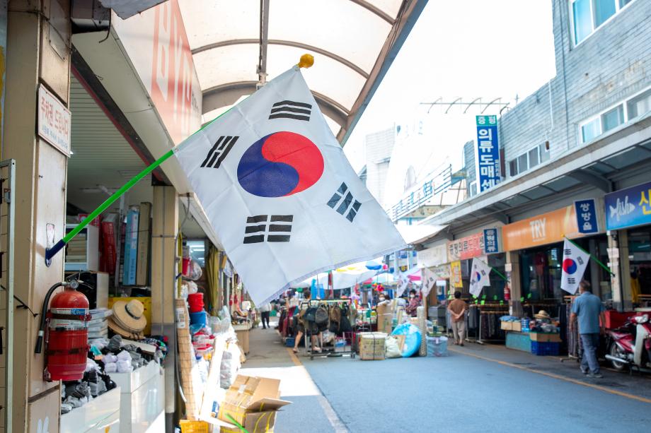 증평의 대표 전통시장인 장뜰시장에 ‘제76주년 광복절’을 기념해 태극기 거리가 조성됐다.