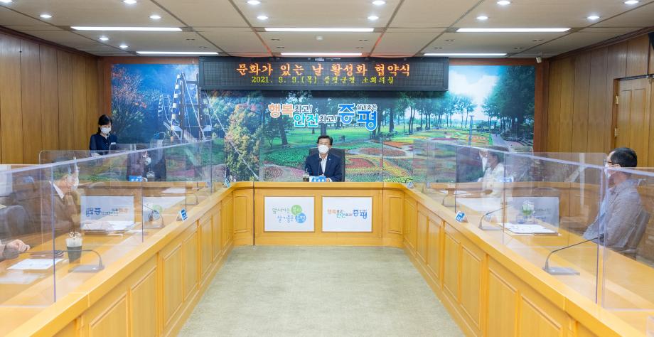 증평군은 9일 군청 소회의실에서‘문화가 있는 날 활성화 협약식’을 개최하고 지역사회 협력체계를 구축했다.
