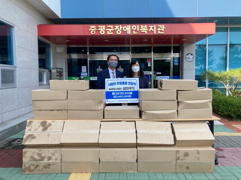 농업회사법인 설마푸드, 증평군장애인복지관에 훈제 닭다리 500봉 전달