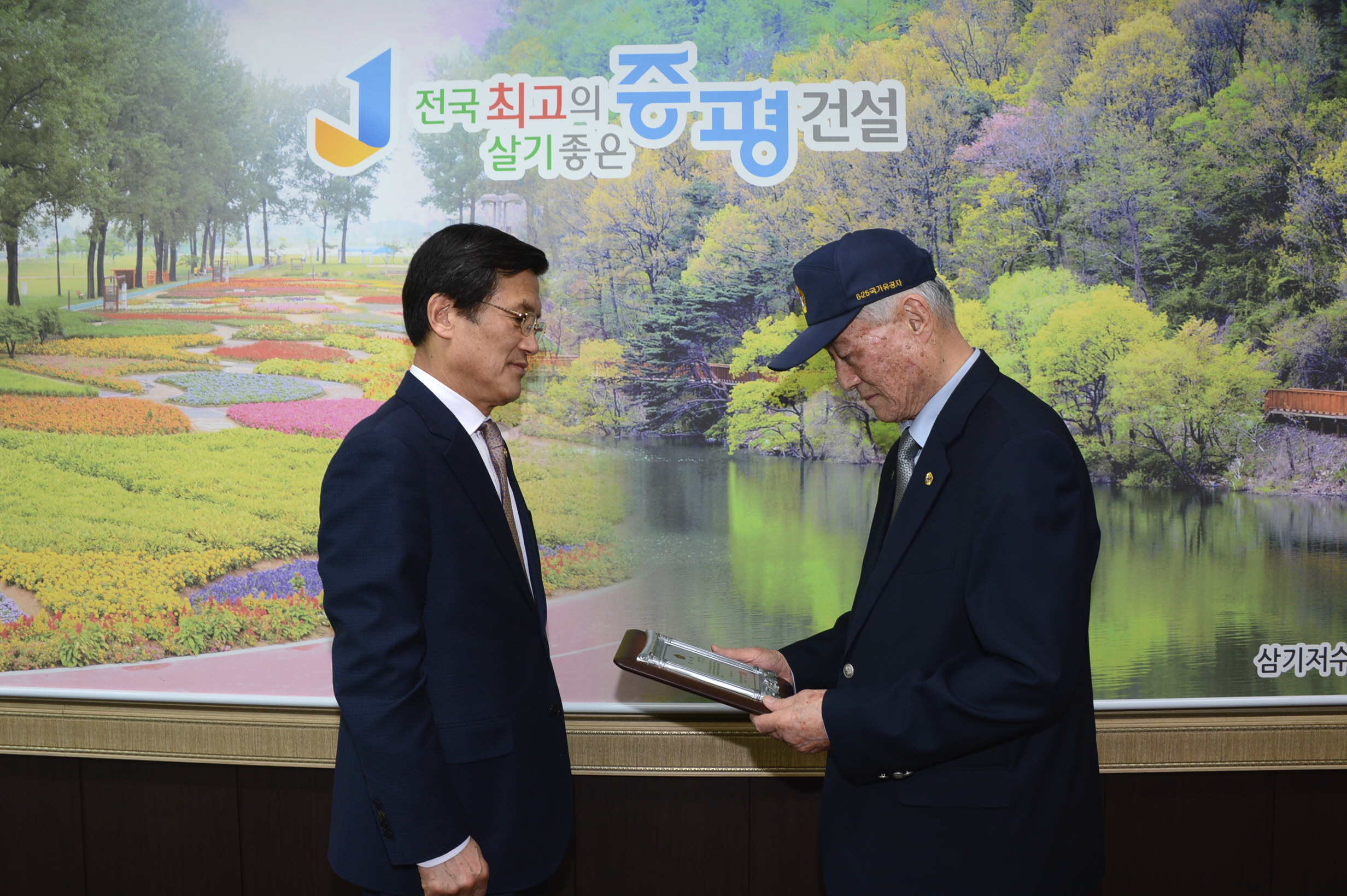 홍성열 증평군수가 21일 국가보훈시책 관심제고 및 참전유공자 존경과 예우 풍토조성에 공헌하여 대한민국 6·25참전유공자회(회장 박희모)로부터 감사패를 받았다.(보도자료실 참조)