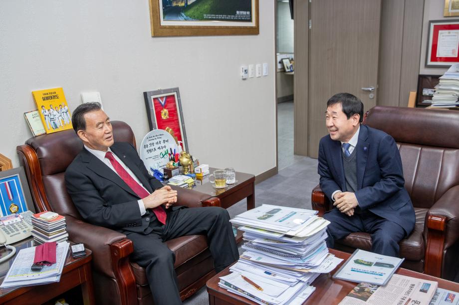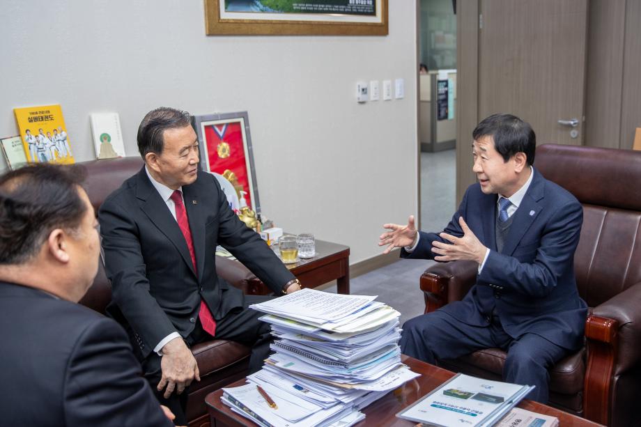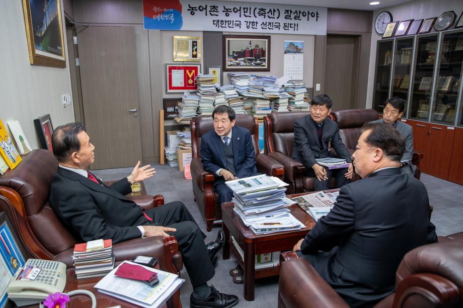 이재영 증평군수는 13일 국회 농림축산식품해양수산위원회 홍문표 의원실(충남 홍성, 예산)을 방문해 지역의 농정 현안 과제에 대해 설명했다.